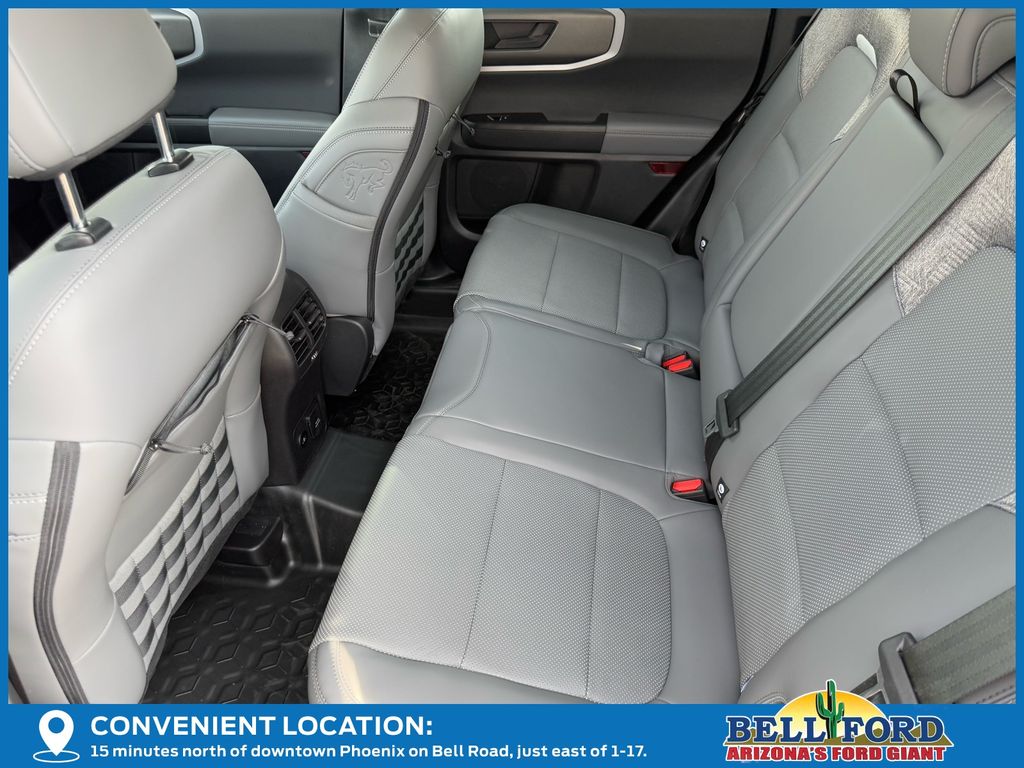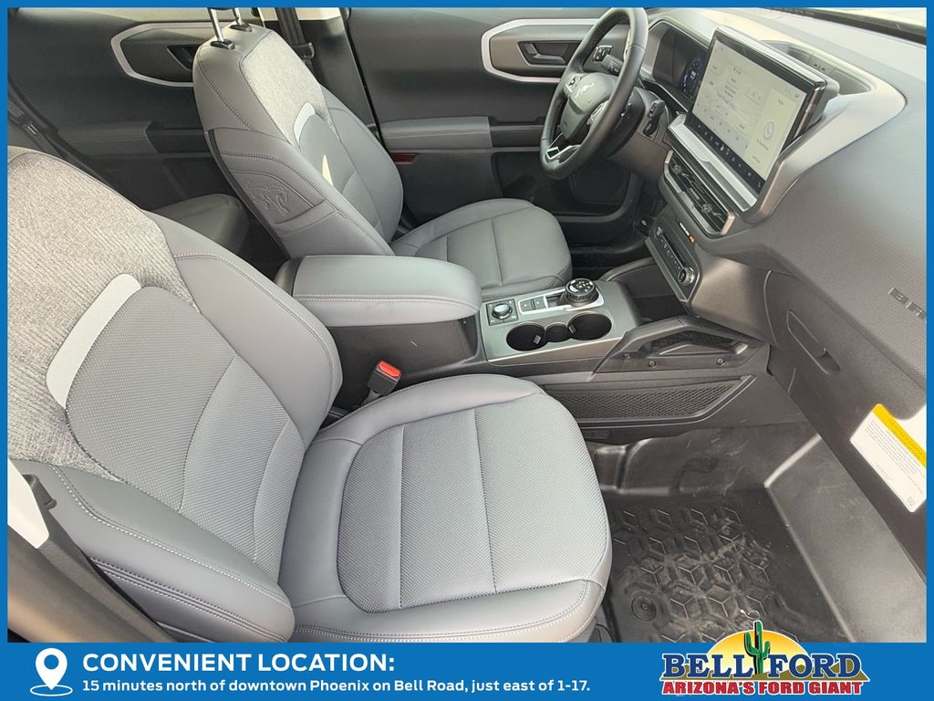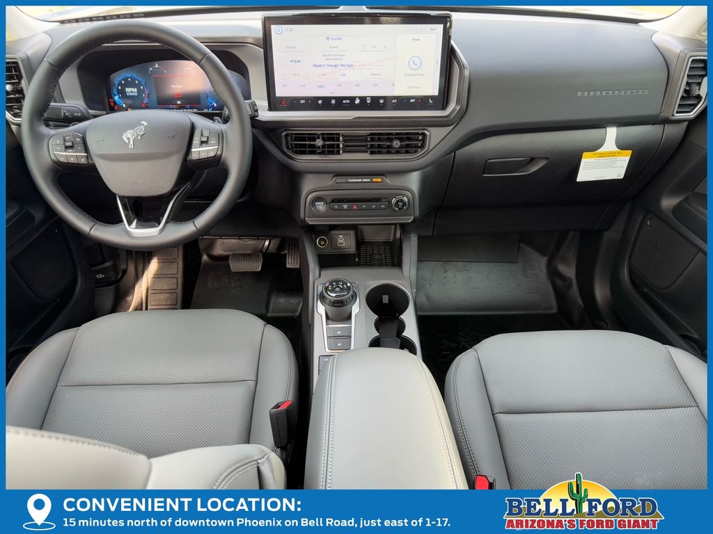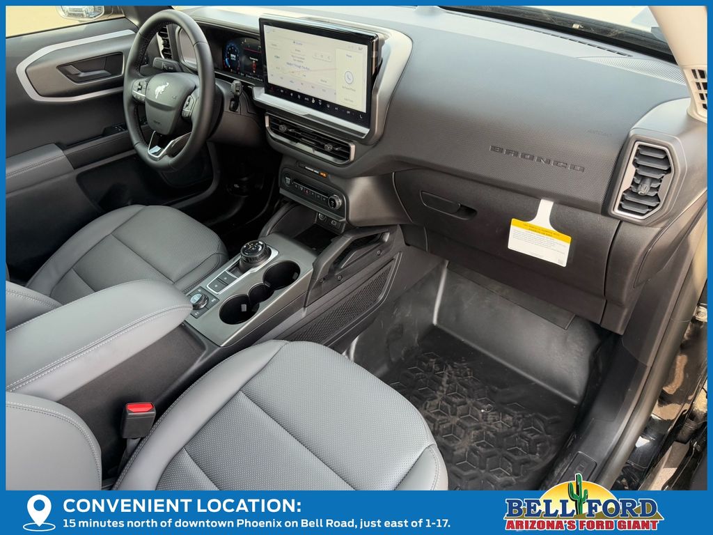 This Ford Bronco Sport is equipped with the following options: Equipment Group 400A, 4-Wheel Disc Brakes, 6 Speakers, ABS brakes, Air Conditioning, Alloy wheels, AM/FM radio: SiriusXM, AM/FM Stereo, Auto High-beam Headlights, Auto-dimming Rear-View mirror, Automatic temperature control, Brake assist, Compass, Delay-off headlights, Driver door bin, Driver vanity mirror, Dual front impact airbags, Dual front side impact airbags, Electronic Stability Control, Emergency communication system: SYNC 4 911 Assist, Four wheel independent suspension, Front anti-roll bar, Front Bucket Seats, Front Center Armrest, Front fog lights, Front License Plate Bracket, Front reading lights, Fully automatic headlights, Garage door transmitter, Heated door mirrors, Heated front seats, Heated steering wheel, Illuminated entry, Knee airbag, Leather Trimmed Front Bucket Seats, Low tire pressure warning, Memory seat, Occupant sensing airbag, Outside temperature display, Overhead airbag, Overhead console, Panic alarm, Passenger door bin, Passenger vanity mirror, Power door mirrors, Power driver seat, Power passenger seat, Power steering, Power windows, Radio data system, Rear anti-roll bar, Rear reading lights, Rear seat center armrest, Rear window defroster, Rear window wiper, Remote keyless entry, Security system, SiriusXM, Speed control, Speed-sensing steering, Speed-Sensitive Wipers, Split folding rear seat, Steering wheel mounted audio controls, SYNC 4 w/Enhanced Voice Recognition, Tachometer, Telescoping steering wheel, Tilt steering wheel, Traction control, Trip computer, Variably intermittent wipers, and Wheels: 17" Matte Black-Painted Aluminum. Price includes: $1000 - Final Days Mega Bonus Cash. Exp. 01/02/2026 $1500 - Retail Bonus Cash. Exp. 01/05/2026