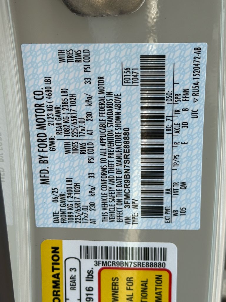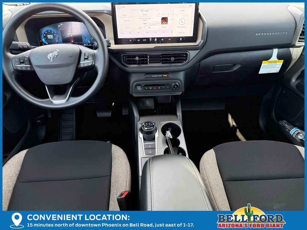 This Ford Bronco Sport is equipped with the following options: Equipment Group 200A, 4-Wheel Disc Brakes, 6 Speakers, ABS brakes, Air Conditioning, Alloy wheels, AM/FM radio: SiriusXM, AM/FM Stereo, Auto High-beam Headlights, Automatic temperature control, Brake assist, Cloth w/Easy-to-Clean Front Bucket Seats, Compass, Delay-off headlights, Driver door bin, Driver vanity mirror, Dual front impact airbags, Dual front side impact airbags, Electronic Stability Control, Emergency communication system: SYNC 4 911 Assist, Four wheel independent suspension, Front anti-roll bar, Front Bucket Seats, Front Center Armrest, Front reading lights, Fully automatic headlights, Heated door mirrors, Illuminated entry, Knee airbag, Low tire pressure warning, Occupant sensing airbag, Outside temperature display, Overhead airbag, Overhead console, Panic alarm, Passenger door bin, Passenger vanity mirror, Power door mirrors, Power steering, Power windows, Radio data system, Rear anti-roll bar, Rear Parking Sensors, Rear reading lights, Rear seat center armrest, Rear window defroster, Rear window wiper, Remote keyless entry, Security system, SiriusXM, Speed control, Speed-sensing steering, Speed-Sensitive Wipers, Split folding rear seat, Steering wheel mounted audio controls, SYNC 4 w/Enhanced Voice Recognition, Tachometer, Telescoping steering wheel, Tilt steering wheel, Traction control, Trip computer, Variably intermittent wipers, and Wheels: 17" Carbonized Gray-Painted Aluminum. Price includes: $1000 - Bonus Customer Cash. Exp. 01/05/2026 $1000 - Final Days Mega Bonus Cash. Exp. 01/02/2026 $500 - Retail Bonus Cash. Exp. 01/05/2026