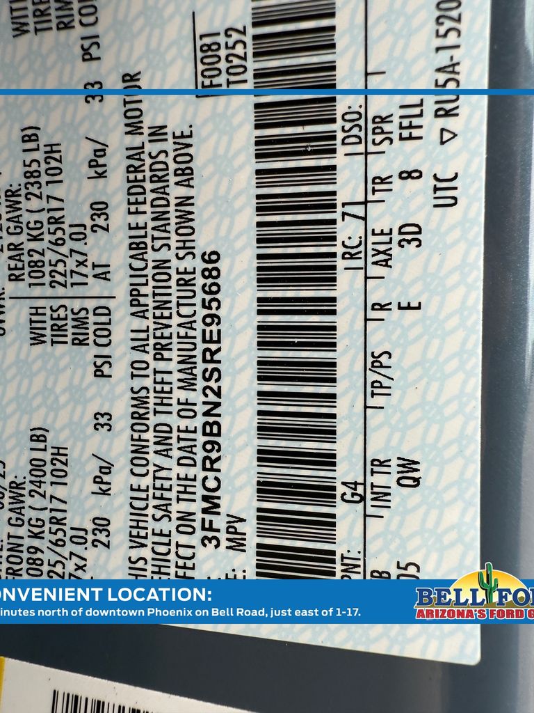 - VIN : 3FMCR9BN2SRE95686