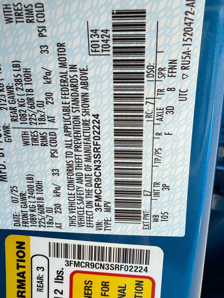 This Ford Bronco Sport is equipped with the following options: Equipment Group 300A, Outer Banks Tech Package+ (B&O Sound System by Bang & Olufsen, Connected Navigation, and HD Radio), 360-Degree Camera w/Trail & Split View, 4-Wheel Disc Brakes, 6 Speakers, ABS brakes, Air Conditioning, Alloy wheels, AM/FM radio: SiriusXM, AM/FM Stereo, Auto High-beam Headlights, Auto-dimming Rear-View mirror, Automatic temperature control, Brake assist, Compass, Delay-off headlights, Driver door bin, Driver vanity mirror, Dual front impact airbags, Dual front side impact airbags, Electronic Stability Control, Emergency communication system: SYNC 4 911 Assist, Four wheel independent suspension, Front anti-roll bar, Front Bucket Seats, Front Center Armrest, Front Driver/Passenger Seat Back Map Pockets, Front dual zone A/C, Front fog lights, Front Parking Sensors, Front reading lights, Fully automatic headlights, Garage door transmitter, Heated door mirrors, Heated front seats, Heated steering wheel, Illuminated entry, Knee airbag, Low tire pressure warning, Memory seat, Occupant sensing airbag, Outside temperature display, Overhead airbag, Overhead console, Panic alarm, Passenger door bin, Passenger vanity mirror, Power door mirrors, Power driver seat, Power passenger seat, Power steering, Power windows, Premium Trimmed Front Bucket Seats w/Ebony/Roast, Radio data system, Rain sensing wipers, Rear anti-roll bar, Rear Parking Sensors, Rear reading lights, Rear seat center armrest, Rear window defroster, Rear window wiper, Remote keyless entry, Reverse Brake Assist, Security system, SiriusXM, Speed control, Speed-sensing steering, Speed-Sensitive Wipers, Split folding rear seat, Steering wheel mounted audio controls, SYNC 4 w/Enhanced Voice Recognition, Tachometer, Telescoping steering wheel, Tilt steering wheel, Traction control, Trip computer, Variably intermittent wipers, and Wheels: 18" Ebony Black-Painted Aluminum. Price includes: $1000 - Bonus Customer Cash. Exp. 01/05/2026 $1000 - Final Days Mega Bonus Cash. Exp. 01/02/2026 $500 - Retail Bonus Cash. Exp. 01/05/2026