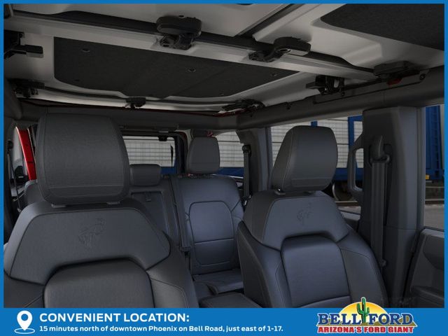 Equipment Group 334A Lux Package (2-Door Intelligent Access w/Lock/Unlock, 360-Degree Camera, Adaptive Cruise Control, Ambient Footwell Lighting, Connected Navigation, Dr & Pass Illuminated Sliding Visor Vanity Mirrors, Dual Smart Charging USB Ports, Dual-Zone Electronic Automatic Temperature Control, Evasive Steering Assist, Front Parking Sensors, Front Row Heated Seats, Information on Demand Panel, Power Outlet - Back Side of Center Floor Console, Radio: B&O Sound System by Bang & Olufsen, Rear Parking Sensors, Sideview Mirrors, and Universal Garage Door Opener), Sasquatch Package (High Clearance Fender Flares, High Clearance Suspension, Position-Sensitive Bilstein Shock Absorbers, and Wheels: 17" Carbonized Gray Painted Aluminum), 4-Wheel Disc Brakes, 7 Speakers, ABS brakes, Air Conditioning, Alloy wheels, AM/FM radio: SiriusXM with 360L, AM/FM Stereo, Auto High-Beam Headlamps, Auto High-beam Headlights, Auto-dimming Rear-View mirror, BLIS Blind Spot Information System, Body Color-Painted Hard Top, Brake assist, Compass, Delay-off headlights, Driver door bin, Driver vanity mirror, Dual front impact airbags, Dual front side impact airbags, Electronic Stability Control, Emergency communication system: 911 Assist, Exterior Parking Camera Rear, Front anti-roll bar, Front Bucket Seats, Front Center Armrest, Front fog lights, Front reading lights, Front wheel independent suspension, Fully automatic headlights, Hard Top Sound Deadening Headliner, Heated door mirrors, Heated front seats, Heated steering wheel, HOSS 3.0 w/FOX Internal Bypass Dampers, Illuminated entry, Integrated roll-over protection, Lane-Keeping System, Leather Shift Knob, Leather-Trimmed/Vinyl Bucket Seats, Low tire pressure warning, Marine Grade Vinyl Heated Bucket Seats, Occupant sensing airbag, Outside temperature display, Overhead airbag, Overhead console, Panic alarm, Passenger door bin, Passenger vanity mirror, Power door mirrors, Power steering, Power windows, Pre-Collision Assist w/Automatic Emergency Braking, Radio data system, Rear-View Camera, Rear-Window Defroster & Washer, Remote keyless entry, Security system, SiriusXM w/360L, Speed control, Split folding rear seat, Steering wheel mounted audio controls, SYNC 4, Tachometer, Telescoping steering wheel, Tilt steering wheel, Traction control, Trip computer, Variably intermittent wipers, Voltmeter, and Wheels: 17" Carbonized Gray-Painted Aluminum. Price includes: $1000 - Bonus Customer Cash. Exp. 01/05/2026 $500 - Retail Bonus Cash. Exp. 01/05/2026