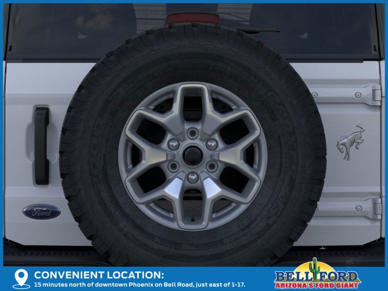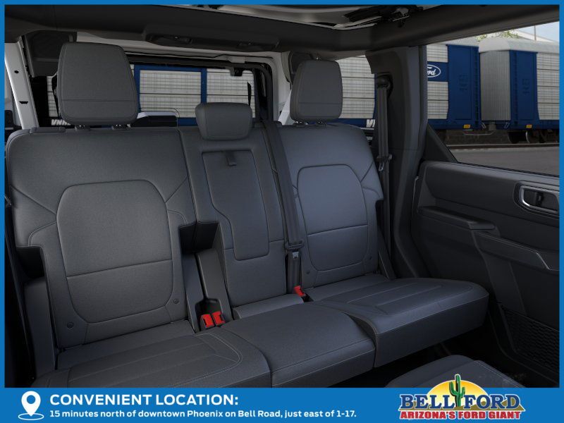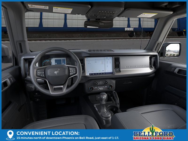 This Ford Bronco is equipped with the following options: Equipment Group 332A Mid Package (2-Door Intelligent Access w/Lock/Unlock, Ambient Footwell Lighting, Connected Navigation, Dr & Pass Illuminated Sliding Visor Vanity Mirrors, Dual Smart Charging USB Ports, Dual-Zone Electronic Automatic Temperature Control, Front Row Heated Seats, Power Outlet - Back Side of Center Floor Console, and Rear Parking Sensors), 4-Wheel Disc Brakes, 4.7 Axle Ratio, 7 Speakers, ABS brakes, Air Conditioning, Alloy wheels, AM/FM radio: SiriusXM with 360L, AM/FM Stereo, Auto High-Beam Headlamps, Auto High-beam Headlights, Auto-dimming Rear-View mirror, BLIS Blind Spot Information System, Brake assist, Compass, Delay-off headlights, Driver door bin, Driver vanity mirror, Dual front impact airbags, Dual front side impact airbags, Electronic Stability Control, Emergency communication system: 911 Assist, Exterior Parking Camera Rear, Front anti-roll bar, Front Bucket Seats, Front Center Armrest, Front fog lights, Front reading lights, Front wheel independent suspension, Fully automatic headlights, Hard Top Sound Deadening Headliner, Heated door mirrors, Heated front seats, Heated steering wheel, Illuminated entry, Integrated roll-over protection, Internet access capable: FordPass Connect, Lane-Keeping System, Leather Shift Knob, Low tire pressure warning, Marine Grade Vinyl Heated Bucket Seats, Occupant sensing airbag, Outside temperature display, Overhead airbag, Overhead console, Panic alarm, Passenger door bin, Passenger vanity mirror, Power door mirrors, Power steering, Power windows, Pre-Collision Assist w/Automatic Emergency Braking, Radio data system, Rear-View Camera, Rear-Window Defroster & Washer, Remote keyless entry, Security system, Shadow Black Painted Hard Top, SiriusXM w/360L, Speed control, Split folding rear seat, Steering wheel mounted audio controls, SYNC 4, Tachometer, Telescoping steering wheel, Tilt steering wheel, Traction control, Trip computer, Variably intermittent wipers, Voltmeter, and Wheels: 17" Carbonized Gray-Painted Aluminum. Price includes: $1000 - Bonus Customer Cash. Exp. 01/05/2026 $1000 - Final Days Mega Bonus Cash. Exp. 01/02/2026 $1000 - Retail Bonus Cash. Exp. 01/05/2026