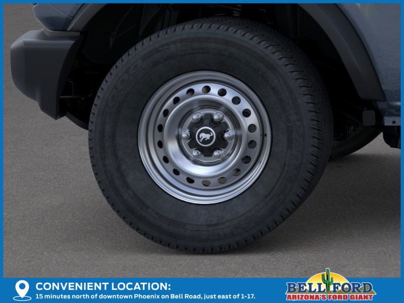 This Ford Bronco is equipped with the following options: Equipment Group 101A, 4-Wheel Disc Brakes, 4.46 Axle Ratio, 7 Speakers, ABS brakes, Air Conditioning, AM/FM radio: SiriusXM with 360L, AM/FM Stereo, Auto High-beam Headlights, Brake assist, Cloth Bucket Seats, Compass, Delay-off headlights, Driver door bin, Driver vanity mirror, Dual front impact airbags, Dual front side impact airbags, Electronic Stability Control, Emergency communication system: 911 Assist, Exterior Parking Camera Rear, First Aid Kit, Front anti-roll bar, Front Bucket Seats, Front Center Armrest, Front reading lights, Front wheel independent suspension, Fully automatic headlights, Heated door mirrors, Illuminated entry, Integrated roll-over protection, Internet access capable: FordPass Connect, Low tire pressure warning, Occupant sensing airbag, Outside temperature display, Overhead airbag, Overhead console, Panic alarm, Passenger door bin, Passenger vanity mirror, Power door mirrors, Power steering, Power windows, Radio data system, Remote keyless entry, Security system, SiriusXM w/360L, Speed control, Split folding rear seat, Steering wheel mounted audio controls, SYNC 4, Tachometer, Telescoping steering wheel, Tilt steering wheel, Traction control, Trip computer, Variably intermittent wipers, and Wheels: 16" Bright Polished Silver-Painted Steel. Price includes: $1000 - Bonus Customer Cash. Exp. 01/05/2026 $1000 - Final Days Mega Bonus Cash. Exp. 01/02/2026 $1000 - Retail Bonus Cash. Exp. 01/05/2026 Price includes dealer added accessories totaling $10,000.