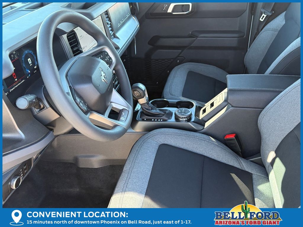 This Ford Bronco is equipped with the following options: Equipment Group 101A, 4-Wheel Disc Brakes, 4.46 Axle Ratio, 7 Speakers, ABS brakes, Air Conditioning, AM/FM radio: SiriusXM with 360L, AM/FM Stereo, Auto High-beam Headlights, Brake assist, Carbonized Gray Molded-In-Color Hard Top, Cloth Bucket Seats, Compass, Delay-off headlights, Driver door bin, Driver vanity mirror, Dual front impact airbags, Dual front side impact airbags, Electronic Stability Control, Emergency communication system: 911 Assist, Exterior Parking Camera Rear, First Aid Kit, Front anti-roll bar, Front Bucket Seats, Front Center Armrest, Front reading lights, Front wheel independent suspension, Fully automatic headlights, Hard Top Sound Deadening Headliner, Heated door mirrors, Illuminated entry, Integrated roll-over protection, Internet access capable: FordPass Connect, Low tire pressure warning, Occupant sensing airbag, Outside temperature display, Overhead airbag, Overhead console, Panic alarm, Passenger door bin, Passenger vanity mirror, Power door mirrors, Power steering, Power windows, Radio data system, Rear-Window Defroster & Washer, Remote keyless entry, Security system, SiriusXM w/360L, Speed control, Split folding rear seat, Steering wheel mounted audio controls, SYNC 4, Tachometer, Telescoping steering wheel, Tilt steering wheel, Traction control, Trip computer, Variably intermittent wipers, and Wheels: 16" Bright Polished Silver-Painted Steel. Price includes: $1000 - Bonus Customer Cash. Exp. 01/05/2026 $1000 - Final Days Mega Bonus Cash. Exp. 01/02/2026 $1000 - Retail Bonus Cash. Exp. 01/05/2026