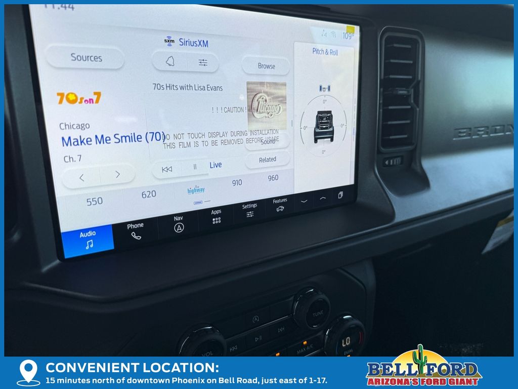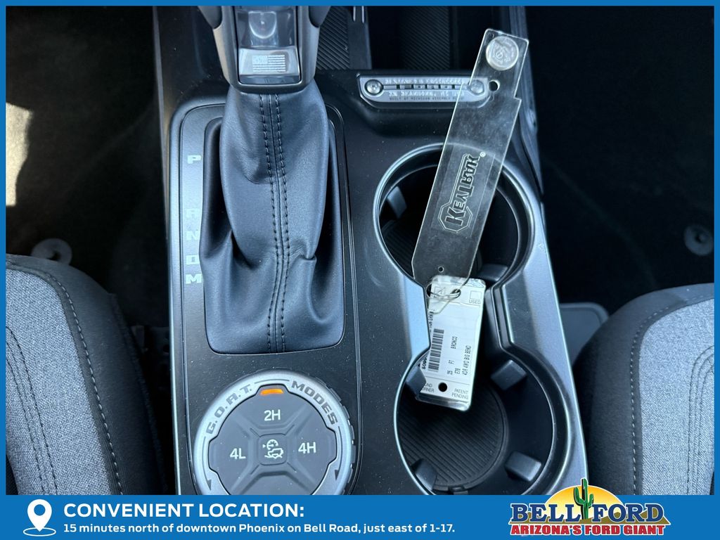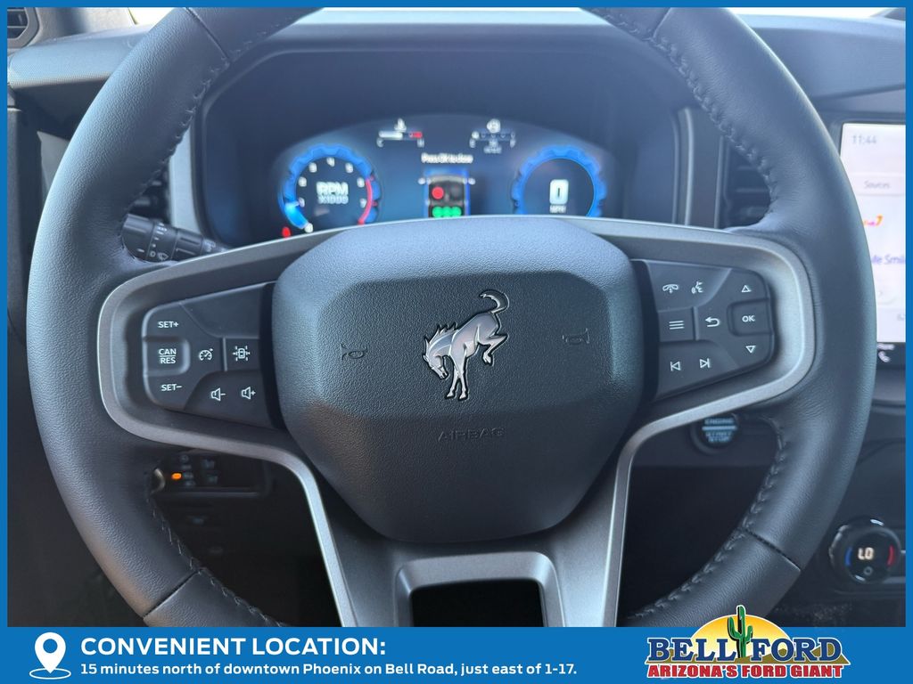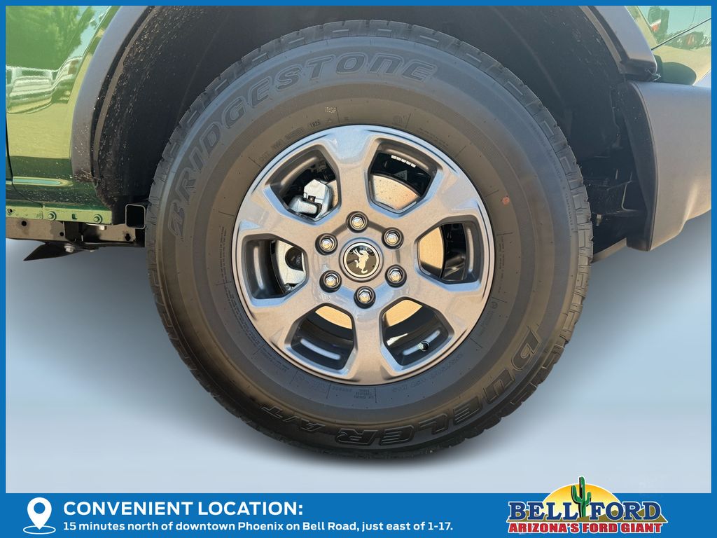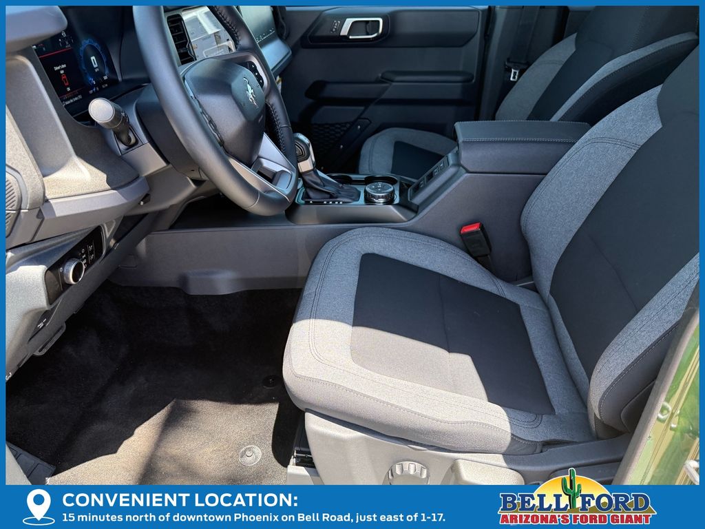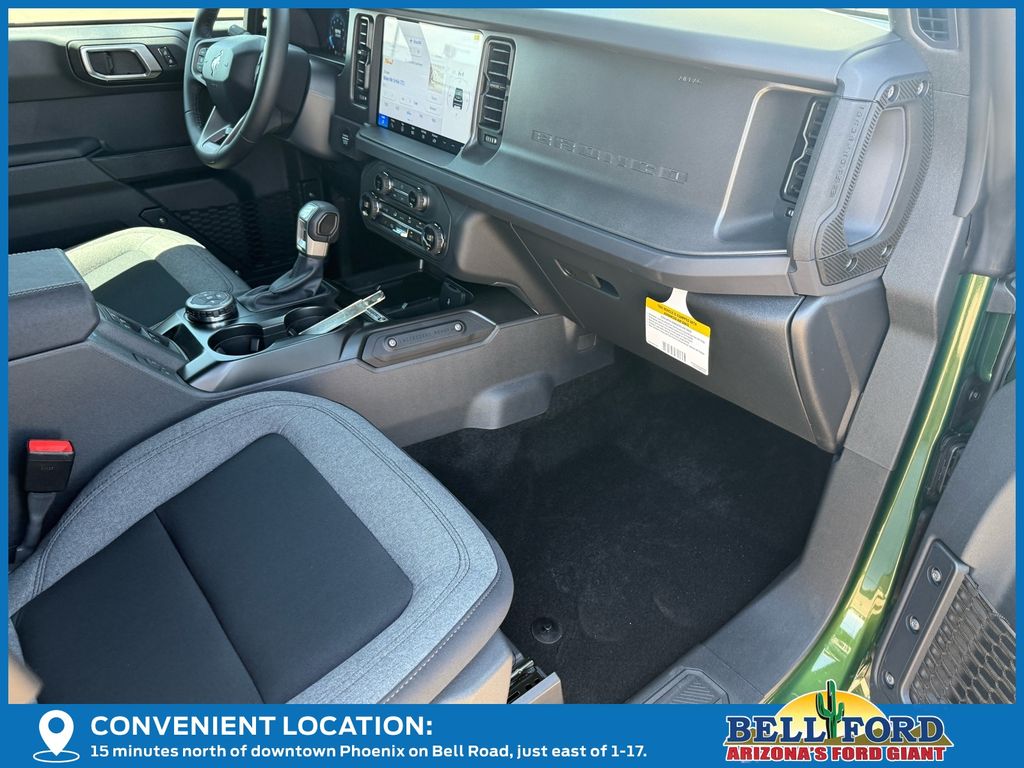 This Ford Bronco is equipped with the following options: Equipment Group 222A Mid Package (2-Door Intelligent Access w/Lock/Unlock, Ambient Footwell Lighting, Connected Navigation, Dr & Pass Illuminated Sliding Visor Vanity Mirrors, Dual Smart Charging USB Ports, Dual-Zone Electronic Automatic Temperature Control, Front Row Heated Seats, Power Outlet - Back Side of Center Floor Console, and Rear Parking Sensors), 4-Wheel Disc Brakes, 4.46 Axle Ratio, 7 Speakers, ABS brakes, Air Conditioning, Alloy wheels, AM/FM radio: SiriusXM with 360L, AM/FM Stereo, Auto High-Beam Headlamps, Auto High-beam Headlights, BLIS Blind Spot Information System, Brake assist, Cloth Bucket Seats, Compass, Delay-off headlights, Driver door bin, Driver vanity mirror, Dual front impact airbags, Dual front side impact airbags, Electronic Stability Control, Emergency communication system: 911 Assist, Exterior Parking Camera Rear, Front anti-roll bar, Front Bucket Seats, Front Center Armrest, Front reading lights, Front wheel independent suspension, Fully automatic headlights, Heated door mirrors, Illuminated entry, Integrated roll-over protection, Internet access capable: FordPass Connect, Lane-Keeping System, Leather Shift Knob, Low tire pressure warning, Occupant sensing airbag, Outside temperature display, Overhead airbag, Overhead console, Panic alarm, Passenger door bin, Passenger vanity mirror, Power door mirrors, Power steering, Power windows, Pre-Collision Assist w/Automatic Emergency Braking, Radio data system, Rear-View Camera, Remote keyless entry, Security system, SiriusXM w/360L, Speed control, Split folding rear seat, Steering wheel mounted audio controls, SYNC 4, Tachometer, Telescoping steering wheel, Tilt steering wheel, Traction control, Trip computer, Variably intermittent wipers, and Wheels: 17" Carbonized Gray-Painted Aluminum. Price includes: $1000 - Bonus Customer Cash. Exp. 01/05/2026 $1000 - Final Days Mega Bonus Cash. Exp. 01/02/2026 $1000 - Retail Bonus Cash. Exp. 01/05/2026