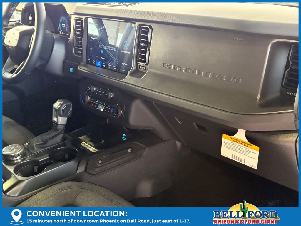 This Ford Bronco is equipped with the following options: Equipment Group 222A Mid Package (2-Door Intelligent Access w/Lock/Unlock, Ambient Footwell Lighting, Connected Navigation, Dr & Pass Illuminated Sliding Visor Vanity Mirrors, Dual Smart Charging USB Ports, Dual-Zone Electronic Automatic Temperature Control, Front Row Heated Seats, Power Outlet - Back Side of Center Floor Console, and Rear Parking Sensors), 4-Wheel Disc Brakes, 4.46 Axle Ratio, 7 Speakers, ABS brakes, Air Conditioning, Alloy wheels, AM/FM radio: SiriusXM with 360L, AM/FM Stereo, Auto High-Beam Headlamps, Auto High-beam Headlights, BLIS Blind Spot Information System, Brake assist, Cloth Bucket Seats, Compass, Delay-off headlights, Driver door bin, Driver vanity mirror, Dual front impact airbags, Dual front side impact airbags, Electronic Stability Control, Emergency communication system: 911 Assist, Exterior Parking Camera Rear, First Aid Kit, Front anti-roll bar, Front Bucket Seats, Front Center Armrest, Front reading lights, Front wheel independent suspension, Fully automatic headlights, Heated door mirrors, Illuminated entry, Integrated roll-over protection, Lane-Keeping System, Leather Shift Knob, Low tire pressure warning, Occupant sensing airbag, Outside temperature display, Overhead airbag, Overhead console, Panic alarm, Passenger door bin, Passenger vanity mirror, Power door mirrors, Power steering, Power windows, Pre-Collision Assist w/Automatic Emergency Braking, Radio data system, Rear-View Camera, Remote keyless entry, Security system, SiriusXM w/360L, Speed control, Split folding rear seat, Steering wheel mounted audio controls, SYNC 4, Tachometer, Telescoping steering wheel, Tilt steering wheel, Traction control, Trip computer, Variably intermittent wipers, and Wheels: 17" Carbonized Gray-Painted Aluminum. Price includes: $2500 - Retail Customer Cash. Exp. 03/31/2026 Price includes dealer added accessories totaling $7,800.