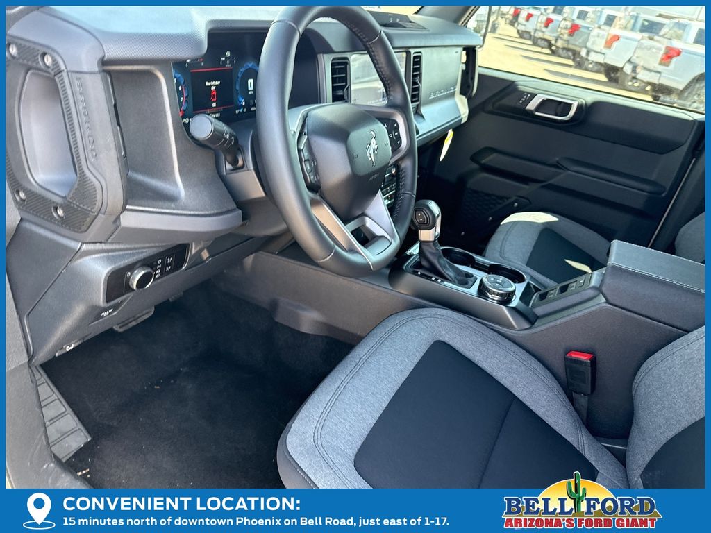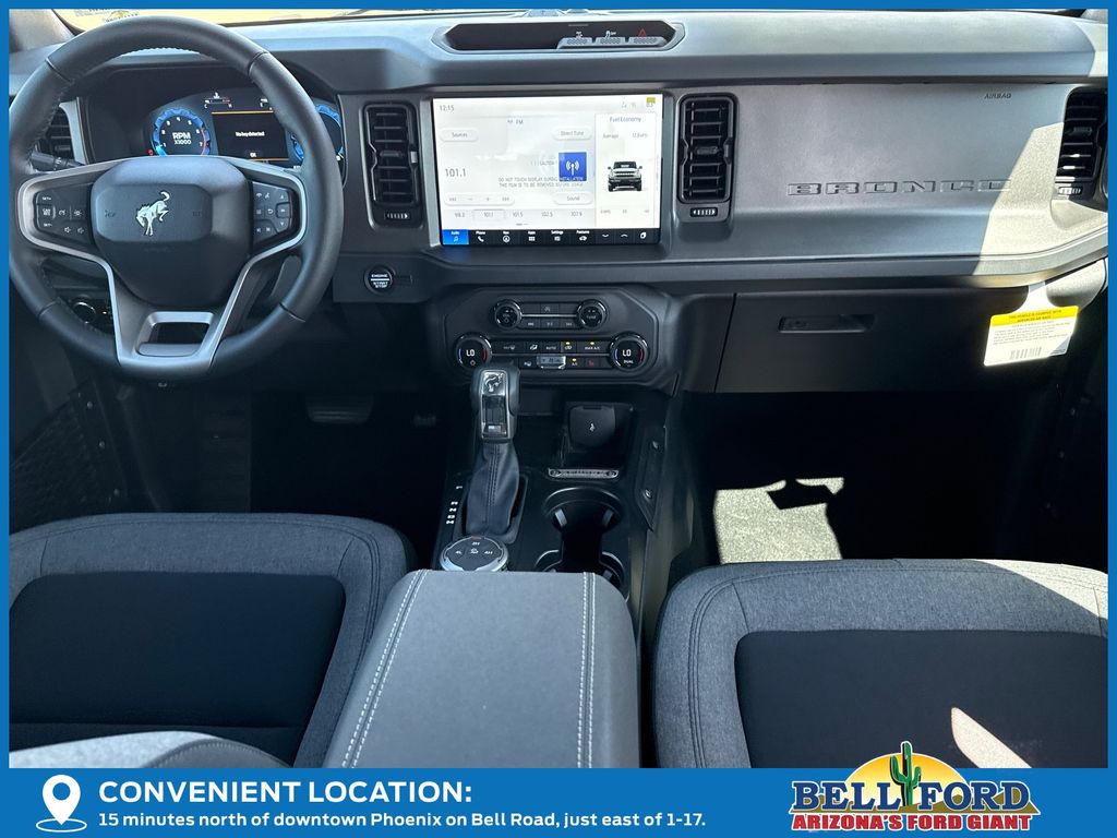 This Ford Bronco is equipped with the following options: Equipment Group 222A Mid Package (2-Door Intelligent Access w/Lock/Unlock, Ambient Footwell Lighting, Connected Navigation, Dr & Pass Illuminated Sliding Visor Vanity Mirrors, Dual Smart Charging USB Ports, Dual-Zone Electronic Automatic Temperature Control, Front Row Heated Seats, Power Outlet - Back Side of Center Floor Console, and Rear Parking Sensors), 4-Wheel Disc Brakes, 4.46 Axle Ratio, 7 Speakers, ABS brakes, Air Conditioning, Alloy wheels, AM/FM radio: SiriusXM with 360L, AM/FM Stereo, Auto High-Beam Headlamps, Auto High-beam Headlights, BLIS Blind Spot Information System, Brake assist, Carbonized Gray Molded-In-Color Hard Top, Cloth Bucket Seats, Compass, Delay-off headlights, Driver door bin, Driver vanity mirror, Dual front impact airbags, Dual front side impact airbags, Electronic Stability Control, Emergency communication system: 911 Assist, Exterior Parking Camera Rear, Front anti-roll bar, Front Bucket Seats, Front Center Armrest, Front reading lights, Front wheel independent suspension, Fully automatic headlights, Hard Top Sound Deadening Headliner, Heated door mirrors, Illuminated entry, Integrated roll-over protection, Internet access capable: FordPass Connect, Lane-Keeping System, Leather Shift Knob, Low tire pressure warning, Occupant sensing airbag, Outside temperature display, Overhead airbag, Overhead console, Panic alarm, Passenger door bin, Passenger vanity mirror, Power door mirrors, Power steering, Power windows, Pre-Collision Assist w/Automatic Emergency Braking, Radio data system, Rear-View Camera, Rear-Window Defroster & Washer, Remote keyless entry, Security system, SiriusXM w/360L, Speed control, Split folding rear seat, Steering wheel mounted audio controls, SYNC 4, Tachometer, Telescoping steering wheel, Tilt steering wheel, Traction control, Trip computer, Variably intermittent wipers, and Wheels: 17" Carbonized Gray-Painted Aluminum. Price includes: $2500 - Retail Customer Cash. Exp. 03/31/2026