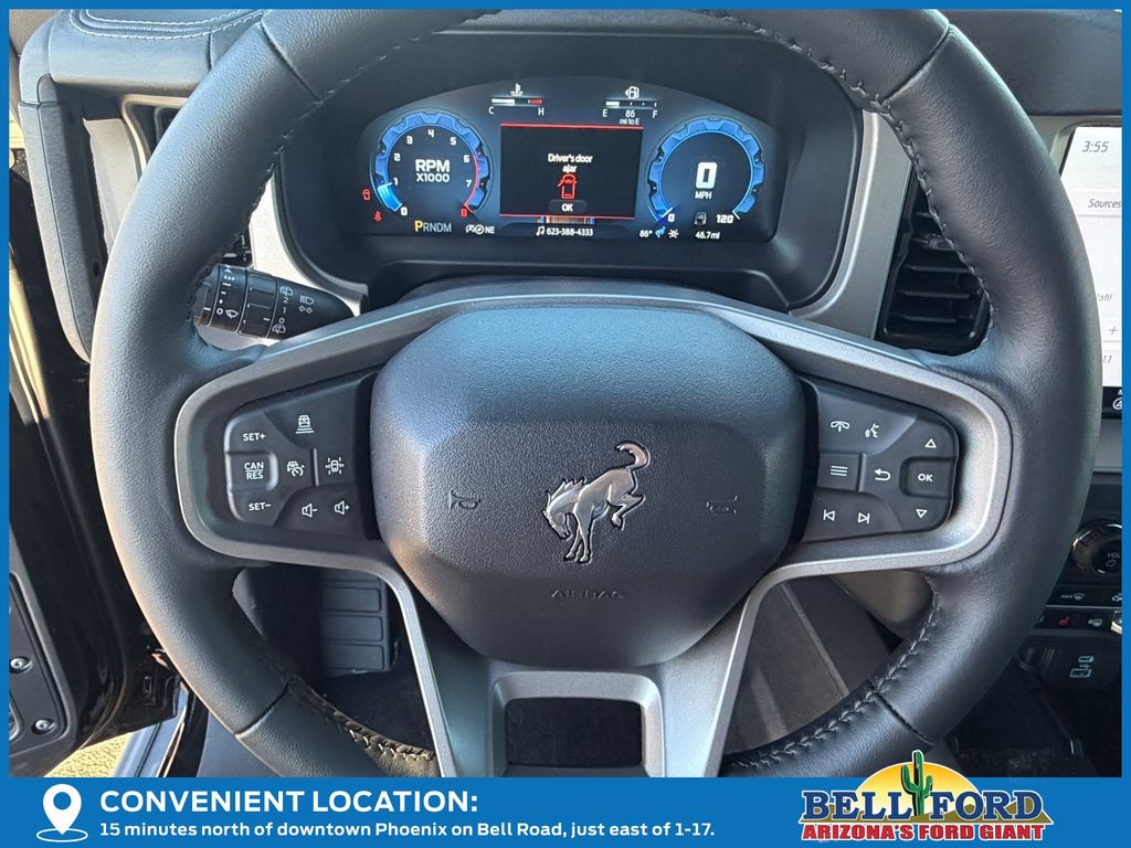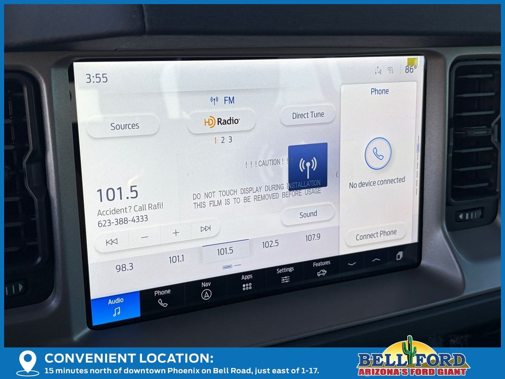 This Ford Bronco is equipped with the following options: Equipment Group 314A Lux Package (360-Degree Camera, Adaptive Cruise Control, Evasive Steering Assist, Front Parking Sensors, Information on Demand Panel, Radio: B&O Sound System by Bang & Olufsen, Sideview Mirrors, and Universal Garage Door Opener), Sasquatch Package (High Clearance Fender Flares, High Clearance Suspension, Position-Sensitive Bilstein Shock Absorbers, and Wheels: 17" Carbonized Gray Painted Aluminum), Trailer Tow Package (DIO), 18" Bright Machined Aluminum Wheels, 4-Wheel Disc Brakes, 7 Speakers, ABS brakes, Air Conditioning, Alloy wheels, AM/FM radio: SiriusXM with 360L, AM/FM Stereo, Auto High-beam Headlights, Auto-dimming Rear-View mirror, Automatic temperature control, Brake assist, Carbonized Gray Molded-In-Color Hard Top, Compass, Connected Navigation, Delay-off headlights, Driver door bin, Driver vanity mirror, Dual front impact airbags, Dual front side impact airbags, Electronic Stability Control, Emergency communication system: 911 Assist, Exterior Parking Camera Rear, First Aid Kit, Front anti-roll bar, Front Bucket Seats, Front Center Armrest, Front dual zone A/C, Front fog lights, Front reading lights, Front wheel independent suspension, Fully automatic headlights, Hard Top Sound Deadening Headliner, Heated door mirrors, Heated front seats, Heated Leather-Trimmed/Vinyl Bucket Seats, Heated steering wheel, Illuminated entry, Integrated roll-over protection, Internet access capable: FordPass Connect, Leather Shift Knob, Low tire pressure warning, Navigation system: Connected Navigation, Occupant sensing airbag, Outside temperature display, Overhead airbag, Overhead console, Panic alarm, Passenger door bin, Passenger vanity mirror, Power door mirrors, Power driver seat, Power passenger seat, Power steering, Power windows, Radio data system, Rear seat center armrest, Rear-Window Defroster & Washer, Remote keyless entry, Security system, SiriusXM w/360L, Speed control, Split folding rear seat, Steering wheel mounted audio controls, SYNC 4, Tachometer, Telescoping steering wheel, Tilt steering wheel, Traction control, Trip computer, Variably intermittent wipers, Voltmeter, and Wheels: 17" Black High Gloss-Painted Aluminum (64X) Price includes: $1000 - Bonus Customer Cash. Exp. 01/05/2026 $1000 - Final Days Mega Bonus Cash. Exp. 01/02/2026 $1000 - Retail Bonus Cash. Exp. 01/05/2026 Price includes dealer added accessories totaling $7,600.