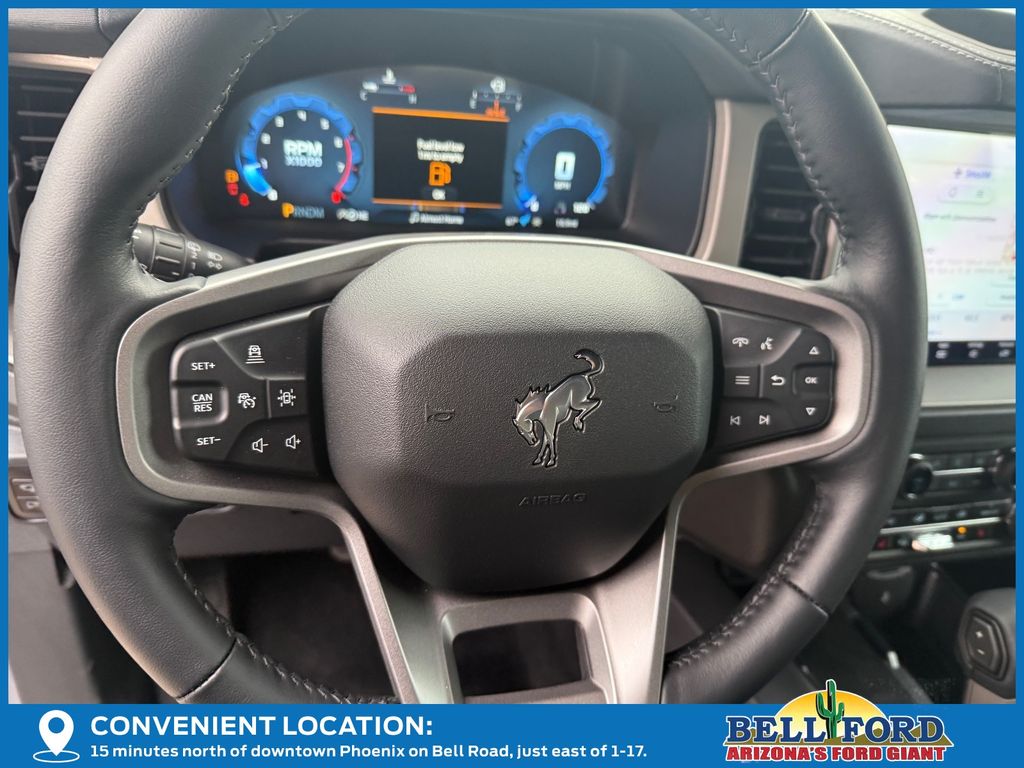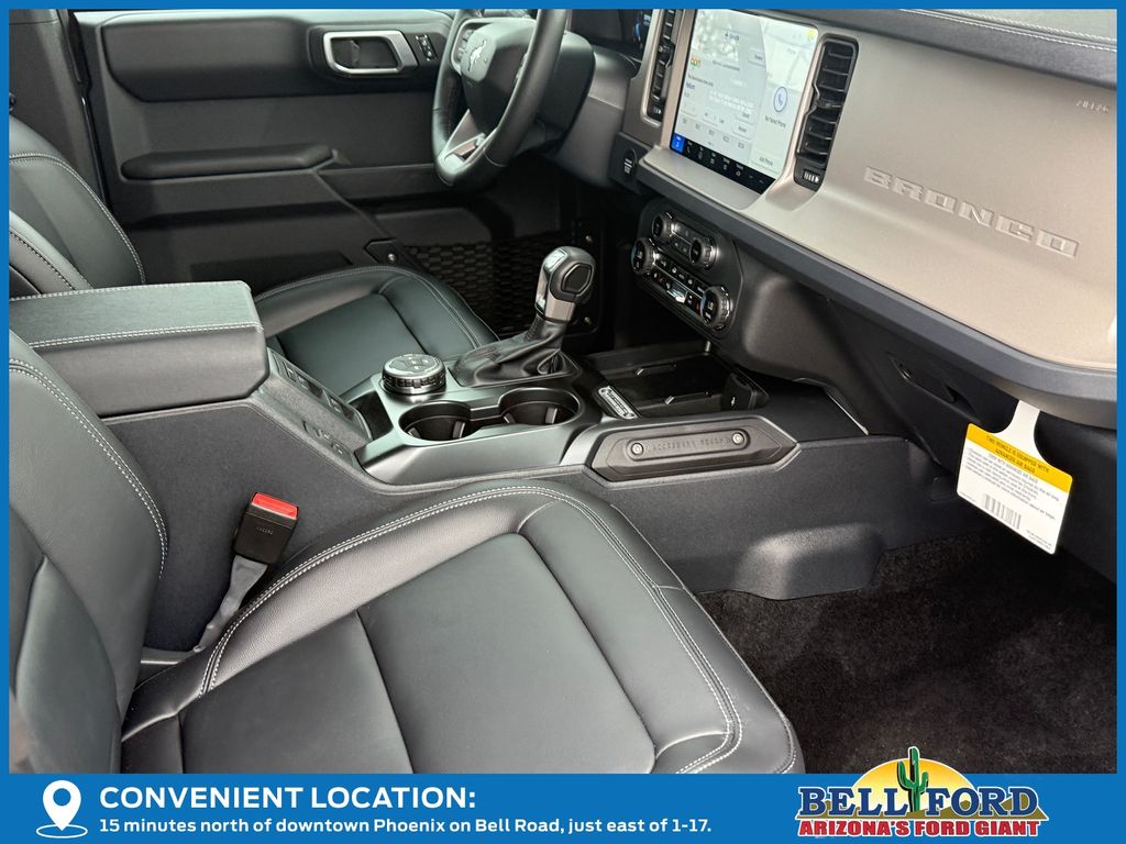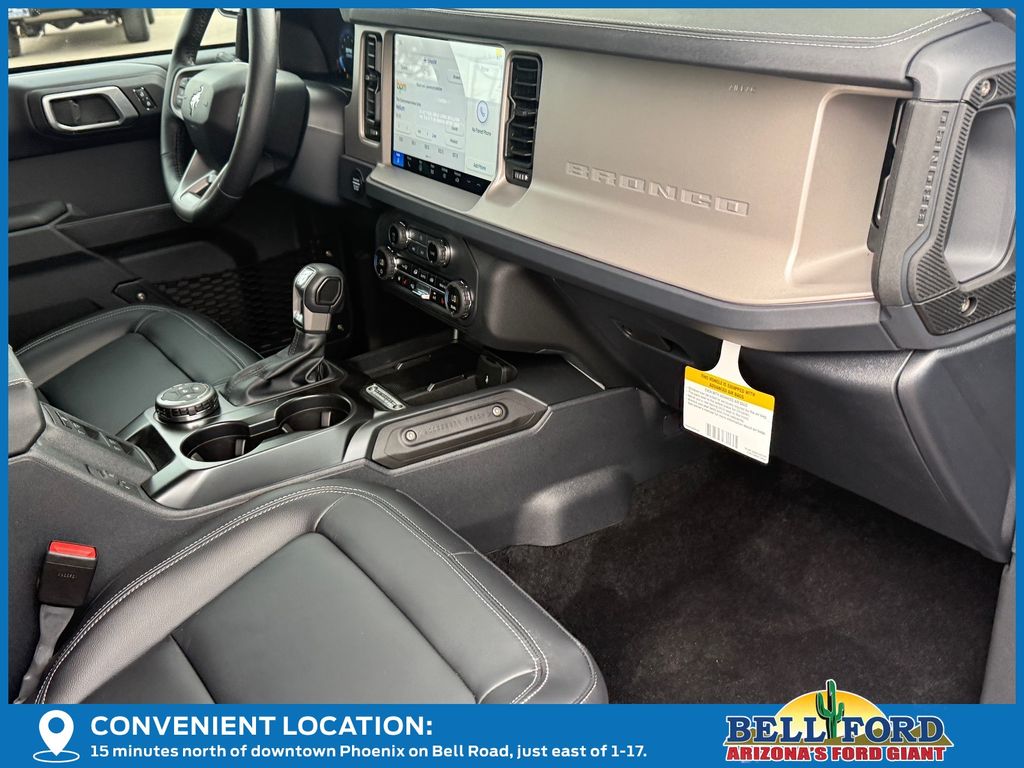 This Ford Bronco is equipped with the following options: Equipment Group 314A Lux Package (360-Degree Camera, Adaptive Cruise Control, Evasive Steering Assist, Front Parking Sensors, Information on Demand Panel, Radio: B&O Sound System by Bang & Olufsen, Sideview Mirrors, and Universal Garage Door Opener), 18" Bright Machined Aluminum Wheels, 3.73 Axle Ratio, 4-Wheel Disc Brakes, 7 Speakers, ABS brakes, Air Conditioning, Alloy wheels, AM/FM radio: SiriusXM with 360L, AM/FM Stereo, Auto High-beam Headlights, Auto-dimming Rear-View mirror, Automatic temperature control, Brake assist, Carbonized Gray Molded-In-Color Hard Top, Compass, Connected Navigation, Delay-off headlights, Driver door bin, Driver vanity mirror, Dual front impact airbags, Dual front side impact airbags, Electronic Stability Control, Emergency communication system: 911 Assist, Exterior Parking Camera Rear, First Aid Kit, Front anti-roll bar, Front Bucket Seats, Front Center Armrest, Front dual zone A/C, Front fog lights, Front reading lights, Front wheel independent suspension, Fully automatic headlights, Hard Top Sound Deadening Headliner, Heated door mirrors, Heated front seats, Heated Leather-Trimmed/Vinyl Bucket Seats, Heated steering wheel, Illuminated entry, Integrated roll-over protection, Internet access capable: FordPass Connect, Leather Shift Knob, Low tire pressure warning, Navigation system: Connected Navigation, Occupant sensing airbag, Outside temperature display, Overhead airbag, Overhead console, Panic alarm, Passenger door bin, Passenger vanity mirror, Power door mirrors, Power driver seat, Power passenger seat, Power steering, Power windows, Radio data system, Rear seat center armrest, Rear-Window Defroster & Washer, Remote keyless entry, Security system, SiriusXM w/360L, Speed control, Split folding rear seat, Steering wheel mounted audio controls, SYNC 4, Tachometer, Telescoping steering wheel, Tilt steering wheel, Traction control, Trip computer, Variably intermittent wipers, and Voltmeter. Price includes: $1000 - SUV Spike Retail Bonus Cash. Exp. 03/02/2026 $2500 - Retail Customer Cash. Exp. 03/31/2026