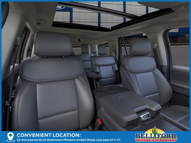 This Ford Expedition is equipped with the following options: Equipment Group 202A High Package (110V/400W AC Power Outlet, 26mm Engine Radiator, 2nd Row Power-Folding Captain's Chairs, 360-Degree Zone Lighting, 3rd Row Flexible Seating, 3rd Row Vinyl Seats, 4-Door Intelligent Access (Lock/Unlock), ActiveX Front Heated Captain's Chairs, BlueCruise Equipped, Flex Powered Console, Ford Split Gate, Front Side Laminated Glass, Heated Steering Wheel, Heavy-Duty Trailer Tow, Integrated Trailer Brake Control, Memory Driver Seat, Power Panoramic Vista Roof w/Power Sunshade, Power Tilt/Telescopic Steering Wheel w/Memory, Power-Folding Sideview Mirrors w/Autofold, Rain Sensing Wipers, SecuriCode Keyless Entry Pad, Universal Garage Door Opener, USB Ports, Wheels: 20" Carbonized Gray Bright Machined Aluminum, and Wireless Charging Pad), 4WD, 3.73 Axle Ratio, 3rd row seats: split-bench, 4-Wheel Disc Brakes, 6 Speakers, ABS brakes, Air Conditioning, Alloy wheels, AM/FM radio: SiriusXM with 360L, Apple CarPlay/Android Auto, Auto High-beam Headlights, Auto-dimming Rear-View mirror, Automatic temperature control, Brake assist, Bumpers: body-color, Cloth Front Captain's Chairs, Compass, Delay-off headlights, Driver door bin, Driver State Detection, Driver vanity mirror, Dual front impact airbags, Dual front side impact airbags, Electronic Stability Control, Emergency communication system: 911 Assist, Exterior Parking Camera Rear, Four wheel independent suspension, Front anti-roll bar, Front Bucket Seats, Front Center Armrest, Front dual zone A/C, Front reading lights, Fully automatic headlights, Heated door mirrors, Illuminated entry, Intersection Assist, Low tire pressure warning, Navigation System, Occupant sensing airbag, Outside temperature display, Overhead airbag, Overhead console, Panic alarm, Passenger door bin, Passenger vanity mirror, Power door mirrors, Power driver seat, Power passenger seat, Power steering, Power windows, Radio data system, Radio: AM/FM Stereo w/MP3 Capable, Rear air conditioning, Rear anti-roll bar, Rear reading lights, Rear window defroster, Rear window wiper, Reclining 3rd row seat, Remote keyless entry, Security system, SiriusXM w/360L, Speed control, Speed-sensing steering, Speed-Sensitive Wipers, Split folding rear seat, Spoiler, Steering wheel mounted audio controls, Tachometer, Telescoping steering wheel, Tilt steering wheel, Traction control, Trip computer, Variably intermittent wipers, Voltmeter, and Wheels: 18" Dark Alloy Painted Aluminum. Price includes: $1000 - Final Days Mega Bonus Cash. Exp. 01/02/2026