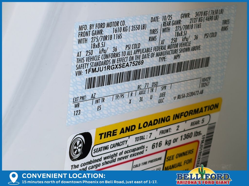 This Ford Expedition is equipped with the following options: Equipment Group 501A High Package (2nd Row Power-Folding Captain's Chairs), 4WD, 10 Speakers, 3.73 Axle Ratio, 3rd row seats: split-bench, 4-Wheel Disc Brakes, ABS brakes, Adjustable pedals, Air Conditioning, Alloy wheels, AM/FM radio: SiriusXM with 360L, Apple CarPlay/Android Auto, Auto High-beam Headlights, Auto-dimming door mirrors, Auto-dimming Rear-View mirror, Automatic temperature control, Brake assist, Bumpers: body-color, Compass, Delay-off headlights, Driver door bin, Driver vanity mirror, Dual front impact airbags, Dual front side impact airbags, Electronic Stability Control, Emergency communication system: 911 Assist, Exterior Parking Camera Rear, Four wheel independent suspension, Front anti-roll bar, Front Bucket Seats, Front Center Armrest, Front dual zone A/C, Front fog lights, Front reading lights, Fully automatic headlights, Garage door transmitter, Heated & Ventilated Leather Front Captain's Chairs, Heated door mirrors, Heated front seats, Heated steering wheel, Illuminated entry, Leather steering wheel, Low tire pressure warning, Memory seat, Navigation System, Occupant sensing airbag, Outside temperature display, Overhead airbag, Overhead console, Panic alarm, Passenger door bin, Passenger vanity mirror, Pedal memory, Power door mirrors, Power driver seat, Power moonroof: Vista Roof, Power passenger seat, Power steering, Power windows, Radio data system, Radio: B&O Sound System by Bang & Olufsen, Rear air conditioning, Rear anti-roll bar, Rear reading lights, Rear window defroster, Rear window wiper, Reclining 3rd row seat, Remote keyless entry, Security system, SiriusXM w/360L, Speed control, Speed-sensing steering, Speed-Sensitive Wipers, Split folding rear seat, Spoiler, Steering wheel memory, Steering wheel mounted audio controls, Tachometer, Telescoping steering wheel, Tilt steering wheel, Traction control, Trip computer, Turn signal indicator mirrors, Variably intermittent wipers, Ventilated front seats, Voltmeter, and Wheels: 18" Dark Carbonized Gray Painted Aluminum. Price includes: $1000 - Final Days Mega Bonus Cash. Exp. 01/02/2026