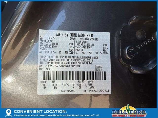 Equipment Group 300A Standard Package, 10 Speakers, 3.58 Non-Limited Slip Rear Axle, 3rd row seats: bench, 4-Wheel Disc Brakes, ABS brakes, Air Conditioning, Alloy wheels, AM/FM radio: SiriusXM with 360L, Apple CarPlay/Android Auto, Auto High-beam Headlights, Automatic temperature control, Brake assist, Bumpers: body-color, Compass, Delay-off headlights, Driver door bin, Driver vanity mirror, Dual front impact airbags, Dual front side impact airbags, Electronic Stability Control, Emergency communication system: 911 Assist, Exterior Parking Camera Rear, Four wheel independent suspension, Front anti-roll bar, Front Bucket Seats, Front Center Armrest, Front dual zone A/C, Front fog lights, Front reading lights, Fully automatic headlights, Garage door transmitter, Heated door mirrors, Heated front seats, Heated steering wheel, Heated Unique Cloth Captain's Chairs, Illuminated entry, Knee airbag, Leather steering wheel, Low tire pressure warning, Navigation System, Occupant sensing airbag, Outside temperature display, Overhead airbag, Overhead console, Panic alarm, Passenger door bin, Passenger vanity mirror, Power door mirrors, Power driver seat, Power Liftgate, Power passenger seat, Power steering, Power windows, Radio: B&O Sound System by Bang & Olufsen, Rear air conditioning, Rear anti-roll bar, Rear reading lights, Rear window defroster, Rear window wiper, Remote keyless entry, Security system, Speed control, Speed-sensing steering, Speed-Sensitive Wipers, Split folding rear seat, Spoiler, Steering wheel mounted audio controls, Tachometer, Telescoping steering wheel, Tilt steering wheel, Traction control, Trip computer, Variably intermittent wipers, and Wheels: 20" Ebony-Painted Machined Aluminum. Price includes: $1500 - Bonus Customer Cash. Exp. 01/05/2026 $500 - Retail Bonus Cash. Exp. 11/19/2025
