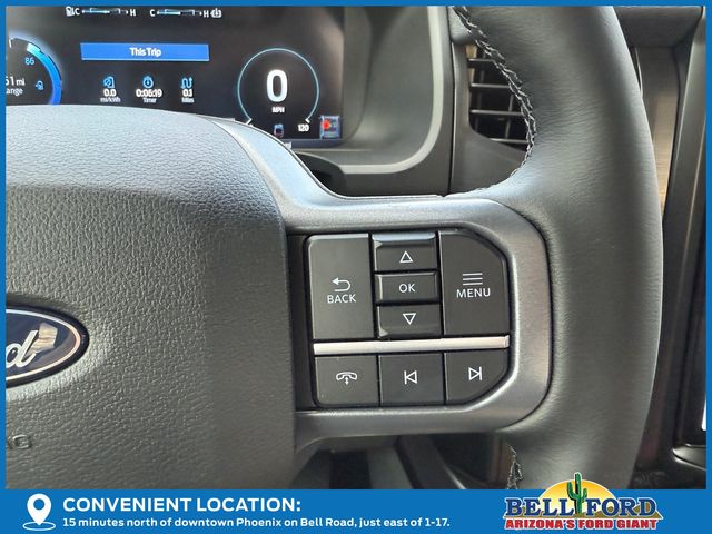 Equipment Group 312A Standard, 4-Wheel Disc Brakes, 8 Speakers, ABS brakes, ActiveX Trimmed Heated Front Seats, Adjustable pedals, Air Conditioning, Alloy wheels, Auto High-beam Headlights, Auto-dimming Rear-View mirror, Automatic temperature control, Brake assist, Bumpers: body-color, Compass, Delay-off headlights, Driver door bin, Driver vanity mirror, Dual front impact airbags, Dual front side impact airbags, Electronic Stability Control, Emergency communication system: SYNC 4 911 Assist, Four wheel independent suspension, Front anti-roll bar, Front Bucket Seats, Front Center Armrest, Front dual zone A/C, Front reading lights, Fully automatic headlights, Heated door mirrors, Heated front seats, Heated steering wheel, Illuminated entry, Knee airbag, Low tire pressure warning, Mobile Power Cord (120/240V), Navigation system: Connected Navigation, Occupant sensing airbag, Outside temperature display, Overhead airbag, Overhead console, Panic alarm, Passenger door bin, Passenger vanity mirror, Power door mirrors, Power driver seat, Power passenger seat, Power steering, Power windows, Radio data system, Radio: B&O Sound System by Bang & Olufsen, Rear anti-roll bar, Rear reading lights, Rear step bumper, Rear window defroster, Remote keyless entry, Security system, Speed control, Speed-sensing steering, Split folding rear seat, Steering wheel mounted audio controls, SYNC 4A w/Enhanced Voice Recognition, Tailgate Step w/Tailgate Work Surface, Telescoping steering wheel, Tilt steering wheel, Traction control, Trip computer, Turn signal indicator mirrors, Variably intermittent wipers, and Wheels: 20" Alloy Dark Carbonized Gray. Price includes: $1000 - Retail Bonus Cash. Exp. 01/05/2026