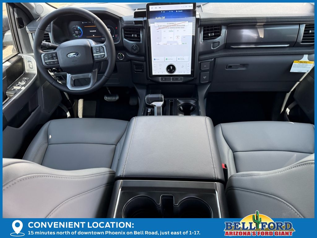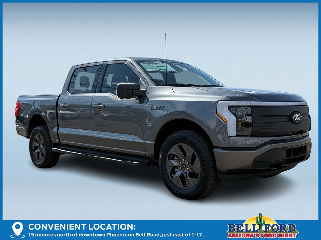 This Ford F-150 Lightning is equipped with the following options: Equipment Group 312A Standard, 4-Wheel Disc Brakes, 8 Speakers, ABS brakes, ActiveX Trimmed Heated Front Seats, Adjustable pedals, Air Conditioning, Alloy wheels, Auto High-beam Headlights, Auto-dimming Rear-View mirror, Automatic temperature control, Brake assist, Bumpers: body-color, Compass, Delay-off headlights, Driver door bin, Driver vanity mirror, Dual front impact airbags, Dual front side impact airbags, Electronic Stability Control, Emergency communication system: SYNC 4 911 Assist, Four wheel independent suspension, Front anti-roll bar, Front Bucket Seats, Front Center Armrest, Front dual zone A/C, Front reading lights, Fully automatic headlights, Heated door mirrors, Heated front seats, Heated steering wheel, Illuminated entry, Internet access capable: FordPass Connect 4G, Knee airbag, Low tire pressure warning, Mobile Power Cord (120/240V), Navigation system: Connected Navigation, Occupant sensing airbag, Outside temperature display, Overhead airbag, Overhead console, Panic alarm, Passenger door bin, Passenger vanity mirror, Power door mirrors, Power driver seat, Power passenger seat, Power steering, Power windows, Pro Power Onboard - 9.6 kW Exportable Power, Radio data system, Radio: B&O Sound System by Bang & Olufsen, Rear anti-roll bar, Rear reading lights, Rear step bumper, Rear window defroster, Remote keyless entry, Security system, Speed control, Speed-sensing steering, Split folding rear seat, Steering wheel mounted audio controls, SYNC 4A w/Enhanced Voice Recognition, Tailgate Step w/Tailgate Work Surface, Telescoping steering wheel, Tilt steering wheel, Traction control, Trip computer, Turn signal indicator mirrors, Variably intermittent wipers, and Wheels: 20" Alloy Dark Carbonized Gray. Price includes: $1000 - Bonus Cash. Exp. 03/31/2026 $1000 - Truck Month Retail Bonus Cash. Exp. 03/31/2026 $5000 - Retail Customer Cash. Exp. 03/31/2026