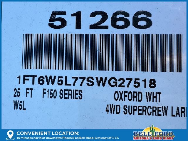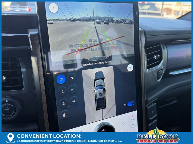 Equipment Group 511A Standard, 4-Wheel Disc Brakes, 8 Speakers, ABS brakes, ActiveX Trimmed Heated & Ventilated Seats, Adjustable pedals, Air Conditioning, Alloy wheels, Auto High-beam Headlights, Auto tilt-away steering wheel, Auto-dimming door mirrors, Auto-dimming Rear-View mirror, Automatic temperature control, Brake assist, Bumpers: body-color, Compass, Delay-off headlights, Driver door bin, Driver vanity mirror, Dual front impact airbags, Dual front side impact airbags, Electronic Stability Control, Emergency communication system: SYNC 4 911 Assist, First Aid Kit w/Ford Logo, Four wheel independent suspension, Front anti-roll bar, Front Bucket Seats, Front Center Armrest, Front dual zone A/C, Front reading lights, Fully automatic headlights, Heated door mirrors, Heated front seats, Heated rear seats, Heated steering wheel, Illuminated entry, Illuminated running boards, Knee airbag, Low tire pressure warning, Memory seat, Mobile Power Cord (120/240V), Navigation system: Connected Navigation, Occupant sensing airbag, Outside temperature display, Overhead airbag, Overhead console, Panic alarm, Passenger door bin, Passenger vanity mirror, Pedal memory, Power door mirrors, Power driver seat, Power moonroof, Power passenger seat, Power steering, Power windows, Pro Power Onboard - 9.6 kW Exportable Power, Radio data system, Radio: B&O Sound System by Bang & Olufsen, Rain sensing wipers, Rear anti-roll bar, Rear reading lights, Rear seat center armrest, Rear step bumper, Rear window defroster, Remote keyless entry, Security system, Speed control, Speed-sensing steering, Split folding rear seat, Steering wheel memory, Steering wheel mounted audio controls, SYNC 4A w/Enhanced Voice Recognition, Telescoping steering wheel, Tilt steering wheel, Traction control, Trip computer, Turn signal indicator mirrors, Variably intermittent wipers, Ventilated front seats, and Wheels: 20" Alloy Dark Carbonized Gray. Price includes: $1000 - Retail Bonus Cash. Exp. 01/05/2026