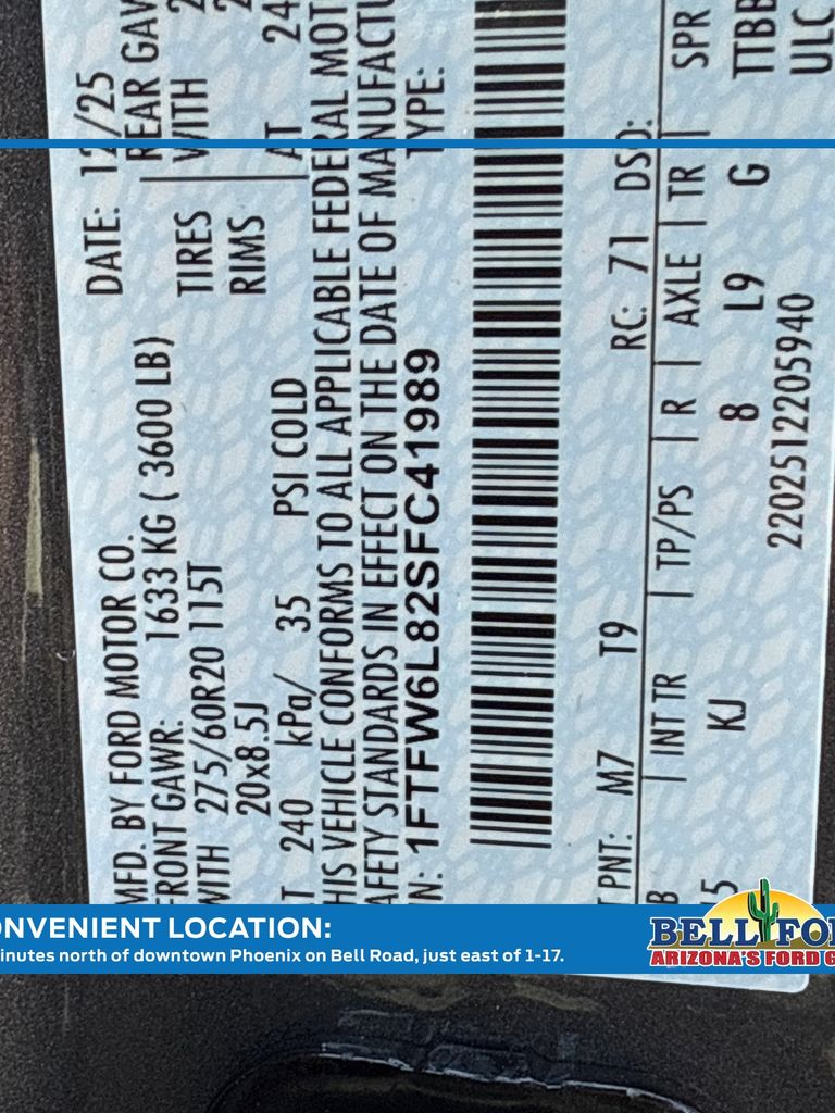 - VIN : 1FTFW6L82SFC41989