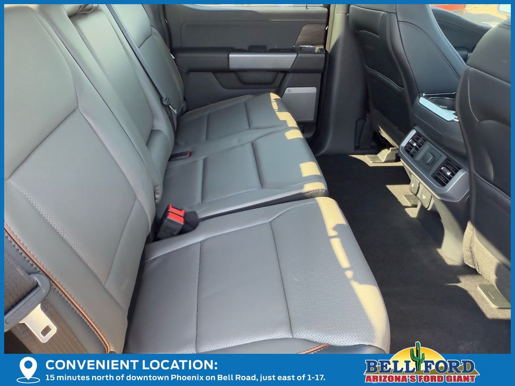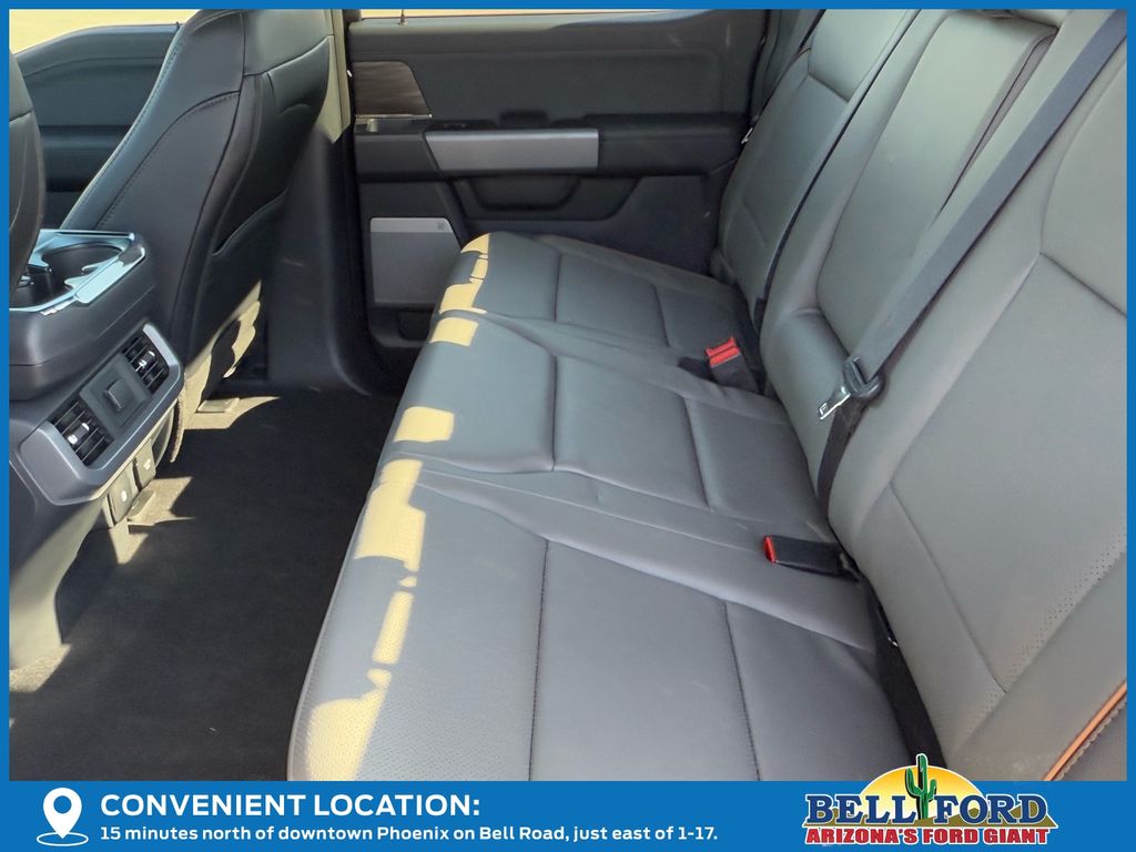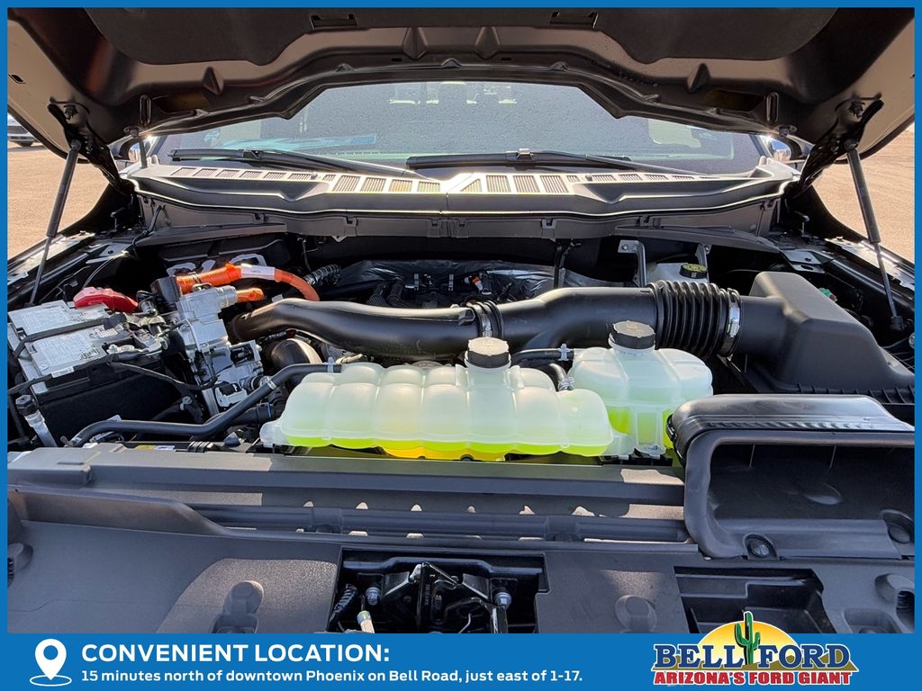 This Ford F-150 is equipped with the following options: Equipment Group 501A Mid (Wheels: 20" Chrome-Like PVD), FX4 Off-Road Package (4x4 FX4 Off-Road Bodyside Decal, Hill Descent Control, Monotube Rear Shocks, Off-Road Tuned Front Shock Absorbers, Rock Crawl Mode, and Tray Style Floor Liner w/o Carpet Mats), Mobile Office Package (Console Worksurface, Partitioned Lockable Rear Storage, and Wireless Charging), Tow/Haul Package, 3.5L PowerBoost Full-Hybrid V6, 4WD, 4-Wheel Disc Brakes, 8 Speakers, ABS brakes, ActiveX Trimmed Bucket Seats, Adjustable pedals, Air Conditioning, Alloy wheels, AM/FM radio: SiriusXM with 360L, Auto High-beam Headlights, Auto-dimming door mirrors, Auto-dimming Rear-View mirror, Automatic temperature control, Brake assist, Bumpers: chrome, Chrome wheels, Compass, Delay-off headlights, Driver door bin, Driver vanity mirror, Dual front impact airbags, Dual front side impact airbags, Electronic Stability Control, Emergency communication system: SYNC 4 911 Assist, Front anti-roll bar, Front Bucket Seats, Front Center Armrest, Front dual zone A/C, Front fog lights, Front reading lights, Front wheel independent suspension, Fully automatic headlights, Garage door transmitter, Heated door mirrors, Heated front seats, Heated steering wheel, Illuminated entry, Internet access capable: FordPass Connect 5G, Low tire pressure warning, Memory seat, Navigation system: Connected Navigation, Occupant sensing airbag, Outside temperature display, Overhead airbag, Overhead console, Panic alarm, Passenger door bin, Passenger vanity mirror, Pedal memory, Power door mirrors, Power driver seat, Power passenger seat, Power steering, Power windows, Pro Power Onboard - 7.2KW, Radio data system, Radio: B&O Sound System by Bang & Olufsen, Rain sensing wipers, Rear reading lights, Rear seat center armrest, Rear step bumper, Rear window defroster, Remote keyless entry, Security system, Speed control, Split folding rear seat, Steering wheel mounted audio controls, SYNC 4 w/Enhanced Voice Recognition, Tachometer, Telescoping steering wheel, Tilt steering wheel, Traction control, Trip computer, Turn signal indicator mirrors, Variably intermittent wipers, Ventilated front seats, Voltmeter, and Wheels: 18" Chrome-Like PVD. Price includes: $1000 - Final Days Mega Bonus Cash. Exp. 01/02/2026 $2000 - Retail Customer Cash. Exp. 01/05/2026