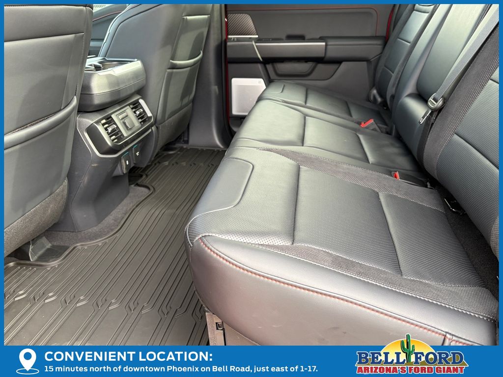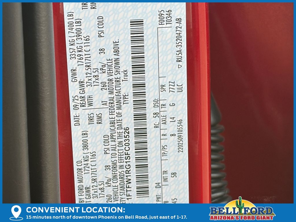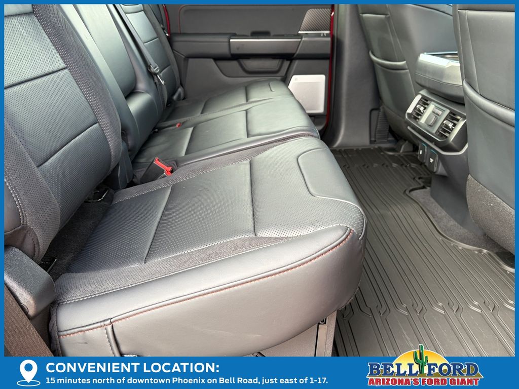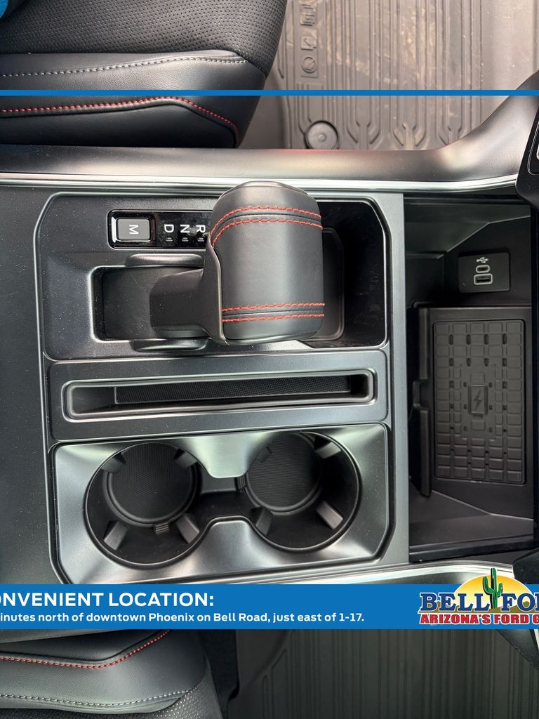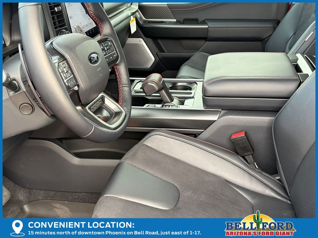 This Ford F-150 is equipped with the following options: Equipment Group 802A Raptor 37 (Carbon Fiber Interior Appliques, Dual Valve Shocks, Modular Front Bumper, RECARO Alcantara Suede Front Seats, and Wheels: Raptor 37 Unique 17" Cast Aluminum), 4WD, 14 Speakers, 17" Cast Aluminum Wheels, 4-Wheel Disc Brakes, ABS brakes, Adjustable pedals, Air Conditioning, Alloy wheels, AM/FM radio: SiriusXM with 360L, Auto High-beam Headlights, Auto tilt-away steering wheel, Auto-dimming door mirrors, Auto-dimming Rear-View mirror, Automatic temperature control, Brake assist, Bumpers: body-color, Compass, Delay-off headlights, Driver door bin, Driver vanity mirror, Dual front impact airbags, Dual front side impact airbags, Electronic Locking w/4.10 Axle Ratio, Electronic Stability Control, Emergency communication system: SYNC 4 911 Assist, Front anti-roll bar, Front Bucket Seats, Front Center Armrest, Front dual zone A/C, Front fog lights, Front License Plate Bracket, Front reading lights, Front wheel independent suspension, Fully automatic headlights, Garage door transmitter, Heads-Up Display, Heated door mirrors, Heated front seats, Heated rear seats, Heated steering wheel, Illuminated entry, Internet access capable: FordPass Connect 5G, Lane Departure Warning System, Leather steering wheel, Leather Trimmed Seats, Low tire pressure warning, Memory seat, Navigation system: Connected Navigation, Occupant sensing airbag, Outside temperature display, Overhead airbag, Overhead console, Panic alarm, Passenger door bin, Passenger vanity mirror, Pedal memory, Power door mirrors, Power driver seat, Power passenger seat, Power steering, Power windows, Radio data system, Radio: B&O Unleashed Sound System by Bang & Olufsen, Rain sensing wipers, Rear reading lights, Rear step bumper, Rear window defroster, Remote keyless entry, SecuriCode Keyless-Entry Keypad, Security system, Speed control, Speed-sensing steering, Split folding rear seat, Steering wheel memory, Steering wheel mounted audio controls, SYNC 4 w/Enhanced Voice Recognition, Tachometer, Telescoping steering wheel, Tilt steering wheel, Traction control, Trip computer, Turn signal indicator mirrors, Variably intermittent wipers, and Ventilated front seats.