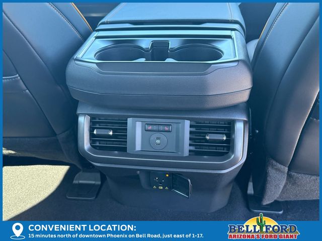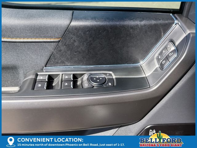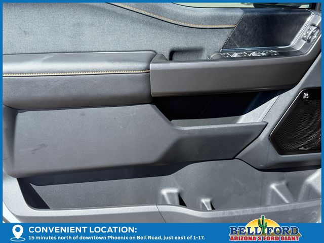 Bed Utility Package (4 Pickup Box Tie-Down Plates, LED Box Lighting, and Power Tailgate), Equipment Group 402A High (2nd Row Heated Seats, Ambient Lighting, Auto-Dimming Rear-View Mirror, Front Axle w/Torsen Differential, Heads-Up Display, Heated Steering Wheel, LED Taillamps, Media Bin Door, Modular Front Bumper & Carbon Black Rear Bumper, Power Glass Heated Sideview Mirrors, Power-Adjustable Pedals w/Memory, Premium Wrapped Steering Wheel, Radio: B&O Unleashed Sound System by Bang & Olufsen, Rain-Sensing Wipers, Two-Speed Automatic AWD w/Mechanical Locking 4WD, Unique Tremor Leather-Trimmed Bucket Seats, and Universal Garage Door Opener), GVWR: 7,100 lbs Payload Package, Mobile Office Package (Console Worksurface, Partitioned Lockable Rear Storage, and Wireless Charging), Tow/Haul Package (Integrated Trailer Brake Controller), 4WD, 4-Wheel Disc Brakes, 8 Speakers, ABS brakes, Adjustable pedals, Air Conditioning, Alloy wheels, AM/FM radio: SiriusXM with 360L, Auto High-beam Headlights, Auto-dimming door mirrors, Auto-dimming Rear-View mirror, Automatic temperature control, Brake assist, Bumpers: body-color, Compass, Delay-off headlights, Driver door bin, Driver vanity mirror, Dual front impact airbags, Dual front side impact airbags, Electronic Locking w/3.73 Axle Ratio, Electronic Stability Control, Emergency communication system: SYNC 4 911 Assist, First Aid Kit w/Ford Logo, Front anti-roll bar, Front Bucket Seats, Front Center Armrest, Front dual zone A/C, Front fog lights, Front reading lights, Front wheel independent suspension, Fully automatic headlights, Heated door mirrors, Heated front seats, Illuminated entry, Low tire pressure warning, Navigation system: Connected Navigation, Occupant sensing airbag, Outside temperature display, Overhead airbag, Overhead console, Panic alarm, Passenger door bin, Passenger vanity mirror, Power door mirrors, Power driver seat, Power passenger seat, Power steering, Power windows, Radio data system, Radio: B&O Sound System by Bang & Olufsen, Rear reading lights, Rear step bumper, Rear window defroster, Remote keyless entry, Security system, Speed control, Split folding rear seat, Steering wheel mounted audio controls, SYNC 4 w/Enhanced Voice Recognition, Tachometer, Tailgate Step w/Tailgate Work Surface, Telescoping steering wheel, Tilt steering wheel, Traction control, Trip computer, Turn signal indicator mirrors, Twin Panel Moonroof, Unique Sport Cloth 40/Console/40 Power Front Seat, Variably intermittent wipers, Voltmeter, and Wheels: 18" Alloy w/Dark Matte Finish.