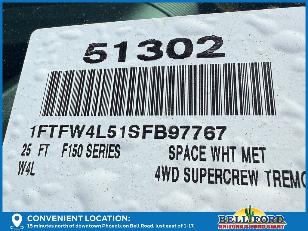 This Ford F-150 is equipped with the following options: Bed Utility Package (4 Pickup Box Tie-Down Plates, LED Box Lighting, and Power Tailgate), Equipment Group 402A High (2nd Row Heated Seats, Ambient Lighting, Auto-Dimming Rear-View Mirror, Front Axle w/Torsen Differential, Heads-Up Display, Heated Steering Wheel, LED Taillamps, Media Bin Door, Modular Front Bumper & Carbon Black Rear Bumper, Power Glass Heated Sideview Mirrors, Power-Adjustable Pedals w/Memory, Premium Wrapped Steering Wheel, Radio: B&O Unleashed Sound System by Bang & Olufsen, Rain-Sensing Wipers, Two-Speed Automatic AWD w/Mechanical Locking 4WD, Unique Tremor Leather-Trimmed Bucket Seats, and Universal Garage Door Opener), GVWR: 7,100 lbs Payload Package, Mobile Office Package (Console Worksurface, Partitioned Lockable Rear Storage, and Wireless Charging), Tow/Haul Package (Integrated Trailer Brake Controller), 4WD, 4-Wheel Disc Brakes, 8 Speakers, ABS brakes, Adjustable pedals, Air Conditioning, Alloy wheels, AM/FM radio: SiriusXM with 360L, Auto High-beam Headlights, Auto-dimming door mirrors, Auto-dimming Rear-View mirror, Automatic temperature control, Brake assist, Bumpers: body-color, Compass, Delay-off headlights, Driver door bin, Driver vanity mirror, Dual front impact airbags, Dual front side impact airbags, Electronic Locking w/3.73 Axle Ratio, Electronic Stability Control, Emergency communication system: SYNC 4 911 Assist, Front anti-roll bar, Front Bucket Seats, Front Center Armrest, Front dual zone A/C, Front fog lights, Front reading lights, Front wheel independent suspension, Fully automatic headlights, Heated door mirrors, Heated front seats, Illuminated entry, Internet access capable: FordPass Connect 5G, Low tire pressure warning, Navigation system: Connected Navigation, Occupant sensing airbag, Outside temperature display, Overhead airbag, Overhead console, Panic alarm, Passenger door bin, Passenger vanity mirror, Power door mirrors, Power driver seat, Power passenger seat, Power steering, Power windows, Radio data system, Radio: B&O Sound System by Bang & Olufsen, Rear reading lights, Rear step bumper, Rear window defroster, Remote keyless entry, Security system, Speed control, Split folding rear seat, Steering wheel mounted audio controls, SYNC 4 w/Enhanced Voice Recognition, Tachometer, Tailgate Step w/Tailgate Work Surface, Telescoping steering wheel, Tilt steering wheel, Traction control, Trip computer, Turn signal indicator mirrors, Twin Panel Moonroof, Unique Sport Cloth 40/Console/40 Power Front Seat, Variably intermittent wipers, Voltmeter, and Wheels: 18" Alloy w/Dark Matte Finish. Price includes: $1000 - Final Days Mega Bonus Cash. Exp. 01/02/2026 $2000 - Retail Customer Cash. Exp. 01/05/2026