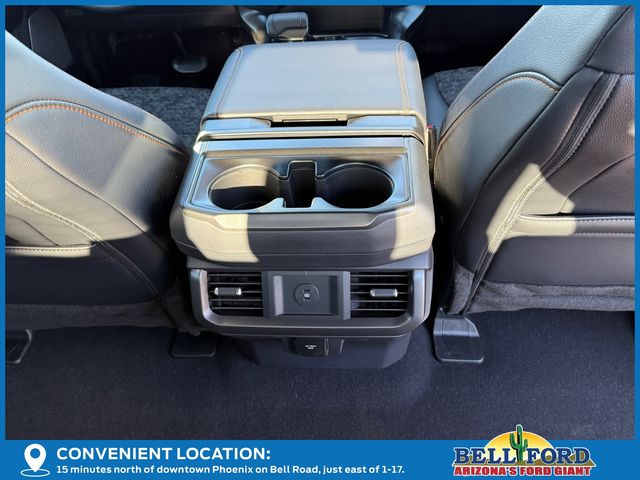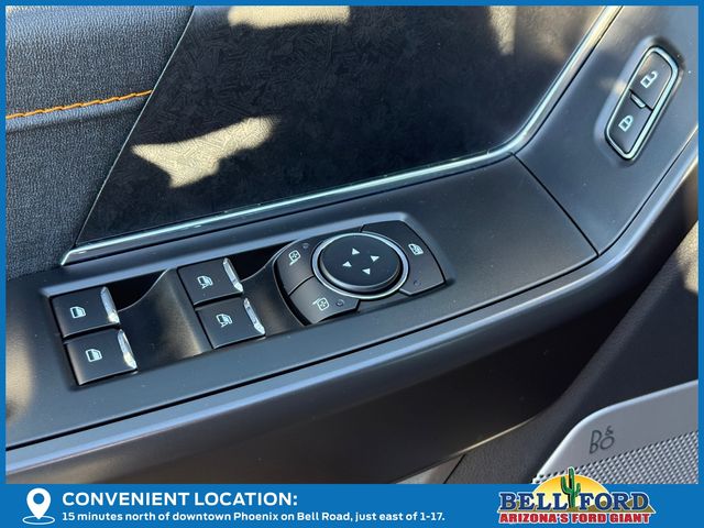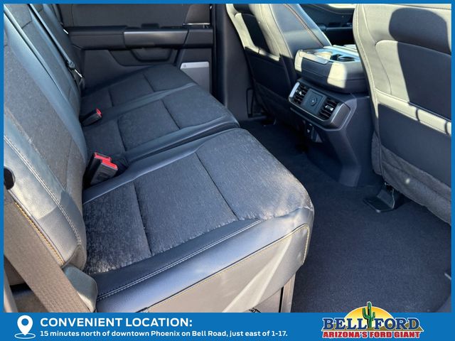 Equipment Group 401A Standard, GVWR: 7,100 lbs Payload Package, Mobile Office Package (Console Worksurface, Partitioned Lockable Rear Storage, and Wireless Charging), Tow/Haul Package (Integrated Trailer Brake Controller), 4WD, 4-Wheel Disc Brakes, 8 Speakers, ABS brakes, Adjustable pedals, Air Conditioning, Alloy wheels, AM/FM radio: SiriusXM with 360L, Auto High-beam Headlights, Auto-dimming door mirrors, Auto-dimming Rear-View mirror, Automatic temperature control, Brake assist, Bumpers: body-color, Compass, Delay-off headlights, Driver door bin, Driver vanity mirror, Dual front impact airbags, Dual front side impact airbags, Electronic Locking w/3.73 Axle Ratio, Electronic Stability Control, Emergency communication system: SYNC 4 911 Assist, First Aid Kit w/Ford Logo, Front anti-roll bar, Front Bucket Seats, Front Center Armrest, Front dual zone A/C, Front fog lights, Front reading lights, Front wheel independent suspension, Fully automatic headlights, Heated door mirrors, Heated front seats, Illuminated entry, Low tire pressure warning, Navigation system: Connected Navigation, Occupant sensing airbag, Outside temperature display, Overhead airbag, Overhead console, Panic alarm, Passenger door bin, Passenger vanity mirror, Power door mirrors, Power driver seat, Power passenger seat, Power steering, Power windows, Radio data system, Radio: B&O Sound System by Bang & Olufsen, Rear reading lights, Rear step bumper, Rear window defroster, Remote keyless entry, Security system, Speed control, Split folding rear seat, Steering wheel mounted audio controls, SYNC 4 w/Enhanced Voice Recognition, Tachometer, Telescoping steering wheel, Tilt steering wheel, Traction control, Trip computer, Turn signal indicator mirrors, Unique Sport Cloth 40/Console/40 Power Front Seat, Variably intermittent wipers, Voltmeter, and Wheels: 18" Alloy w/Dark Matte Finish.