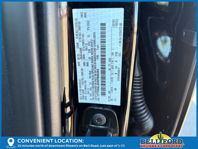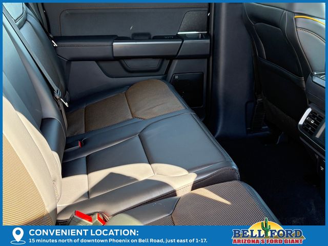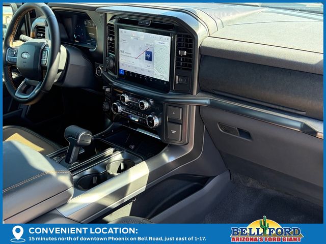 Bed Utility Package (4 Pickup Box Tie-Down Plates, LED Box Lighting, and Power Tailgate), Equipment Group 402A High (2nd Row Heated Seats, Ambient Lighting, Auto-Dimming Rear-View Mirror, Front Axle w/Torsen Differential, Heads-Up Display, Heated Steering Wheel, LED Taillamps, Media Bin Door, Modular Front Bumper & Carbon Black Rear Bumper, Power Glass Heated Sideview Mirrors, Power-Adjustable Pedals w/Memory, Premium Wrapped Steering Wheel, Radio: B&O Unleashed Sound System by Bang & Olufsen, Rain-Sensing Wipers, Two-Speed Automatic AWD w/Mechanical Locking 4WD, Unique Tremor Leather-Trimmed Bucket Seats, and Universal Garage Door Opener), GVWR: 7,100 lbs Payload Package, Mobile Office Package (Console Worksurface, Partitioned Lockable Rear Storage, and Wireless Charging), Tow/Haul Package (Integrated Trailer Brake Controller), 4WD, 4-Wheel Disc Brakes, 8 Speakers, ABS brakes, Adjustable pedals, Air Conditioning, Alloy wheels, AM/FM radio: SiriusXM with 360L, Auto High-beam Headlights, Auto-dimming door mirrors, Auto-dimming Rear-View mirror, Automatic temperature control, Brake assist, Bumpers: body-color, Compass, Delay-off headlights, Driver door bin, Driver vanity mirror, Dual front impact airbags, Dual front side impact airbags, Electronic Locking w/3.73 Axle Ratio, Electronic Stability Control, Emergency communication system: SYNC 4 911 Assist, First Aid Kit w/Ford Logo, Front anti-roll bar, Front Bucket Seats, Front Center Armrest, Front dual zone A/C, Front fog lights, Front reading lights, Front wheel independent suspension, Fully automatic headlights, Heated door mirrors, Heated front seats, Illuminated entry, Low tire pressure warning, Navigation system: Connected Navigation, Occupant sensing airbag, Outside temperature display, Overhead airbag, Overhead console, Panic alarm, Passenger door bin, Passenger vanity mirror, Power door mirrors, Power driver seat, Power passenger seat, Power steering, Power windows, Radio data system, Radio: B&O Sound System by Bang & Olufsen, Rear reading lights, Rear step bumper, Rear window defroster, Remote keyless entry, Security system, Speed control, Split folding rear seat, Steering wheel mounted audio controls, SYNC 4 w/Enhanced Voice Recognition, Tachometer, Tailgate Step w/Tailgate Work Surface, Telescoping steering wheel, Tilt steering wheel, Traction control, Trip computer, Turn signal indicator mirrors, Unique Sport Cloth 40/Console/40 Power Front Seat, Variably intermittent wipers, Voltmeter, and Wheels: 18" Alloy w/Dark Matte Finish.