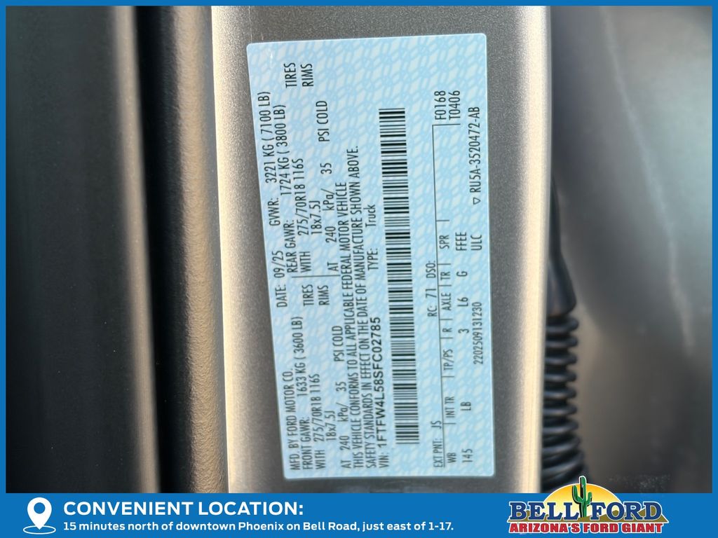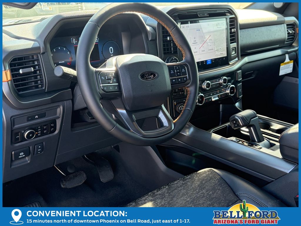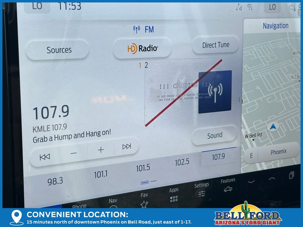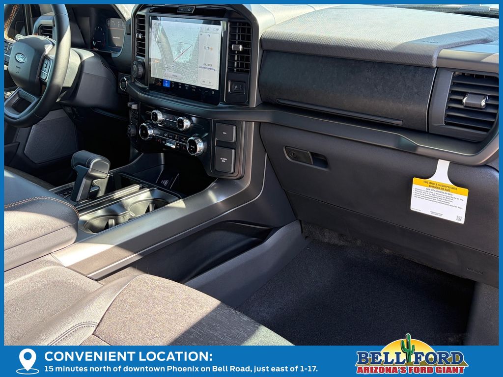 Bed Utility Package (4 Pickup Box Tie-Down Plates, LED Box Lighting, and Power Tailgate), Equipment Group 401A Standard, GVWR: 7,100 lbs Payload Package, Tow/Haul Package (Integrated Trailer Brake Controller), 4WD, 4-Wheel Disc Brakes, 8 Speakers, ABS brakes, Adjustable pedals, Air Conditioning, Alloy wheels, AM/FM radio: SiriusXM with 360L, Auto High-beam Headlights, Auto-dimming door mirrors, Auto-dimming Rear-View mirror, Automatic temperature control, Brake assist, Bumpers: body-color, Compass, Delay-off headlights, Driver door bin, Driver vanity mirror, Dual front impact airbags, Dual front side impact airbags, Electronic Locking w/3.73 Axle Ratio, Electronic Stability Control, Emergency communication system: SYNC 4 911 Assist, First Aid Kit w/Ford Logo, Front anti-roll bar, Front Bucket Seats, Front Center Armrest, Front dual zone A/C, Front fog lights, Front reading lights, Front wheel independent suspension, Fully automatic headlights, Heated door mirrors, Heated front seats, Illuminated entry, Low tire pressure warning, Navigation system: Connected Navigation, Occupant sensing airbag, Outside temperature display, Overhead airbag, Overhead console, Panic alarm, Passenger door bin, Passenger vanity mirror, Power door mirrors, Power driver seat, Power passenger seat, Power steering, Power windows, Radio data system, Radio: B&O Sound System by Bang & Olufsen, Rear reading lights, Rear step bumper, Rear window defroster, Remote keyless entry, Security system, Speed control, Split folding rear seat, Steering wheel mounted audio controls, SYNC 4 w/Enhanced Voice Recognition, Tachometer, Tailgate Step w/Tailgate Work Surface, Telescoping steering wheel, Tilt steering wheel, Traction control, Trip computer, Turn signal indicator mirrors, Unique Sport Cloth 40/Console/40 Power Front Seat, Variably intermittent wipers, Voltmeter, and Wheels: 18" Alloy w/Dark Matte Finish.