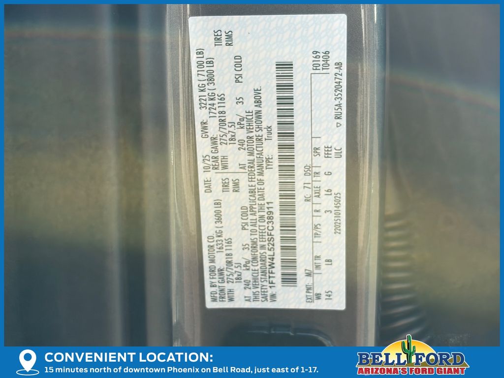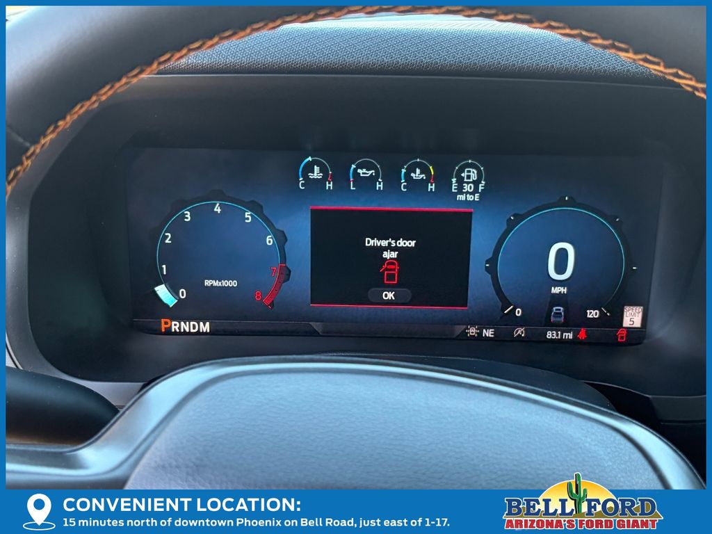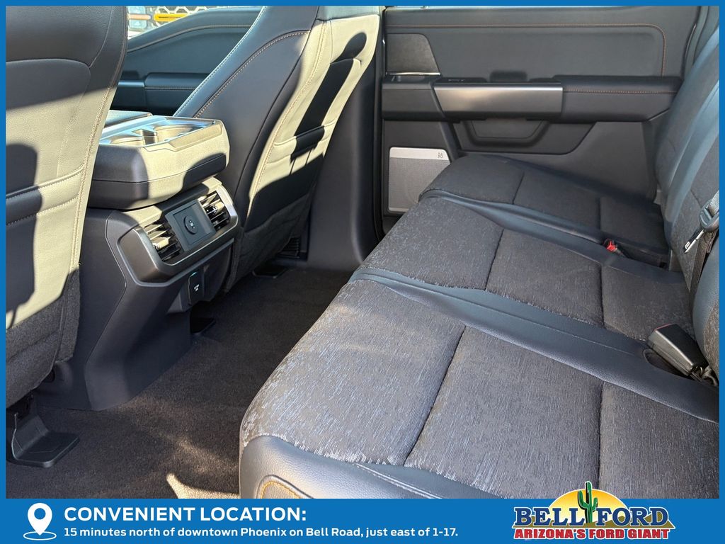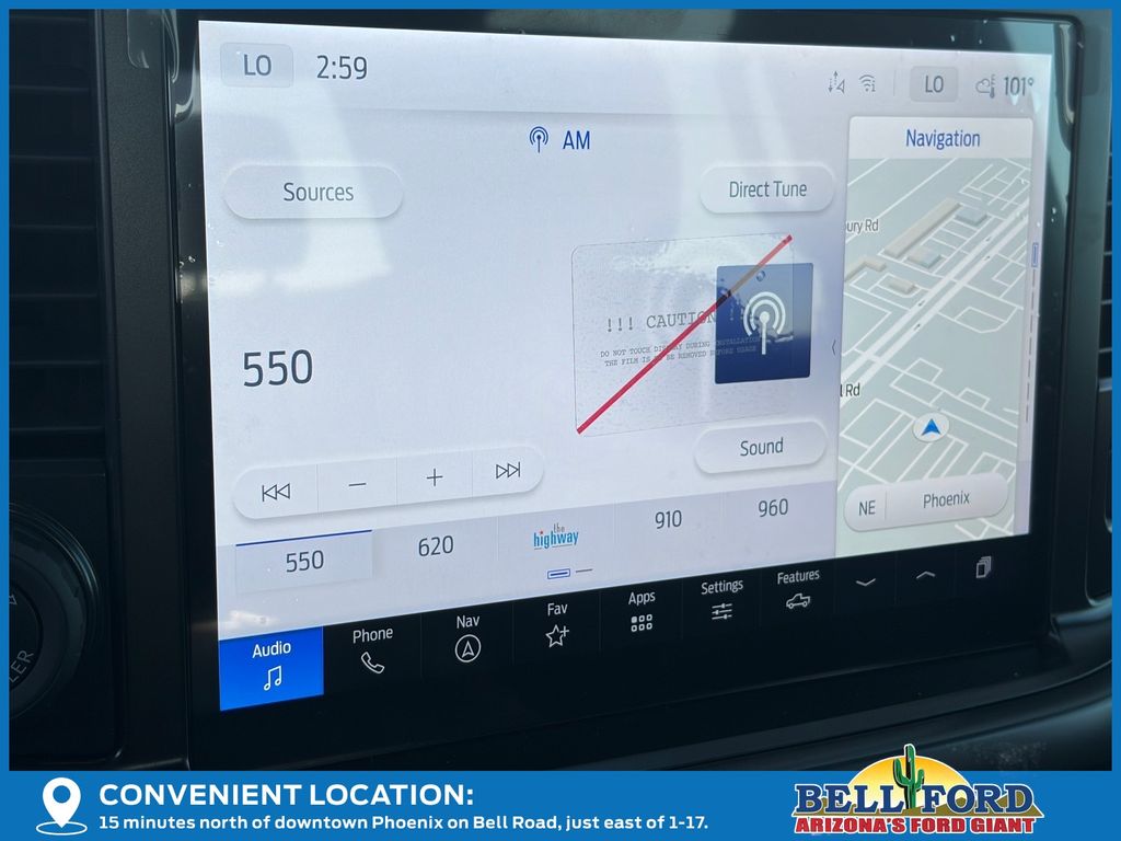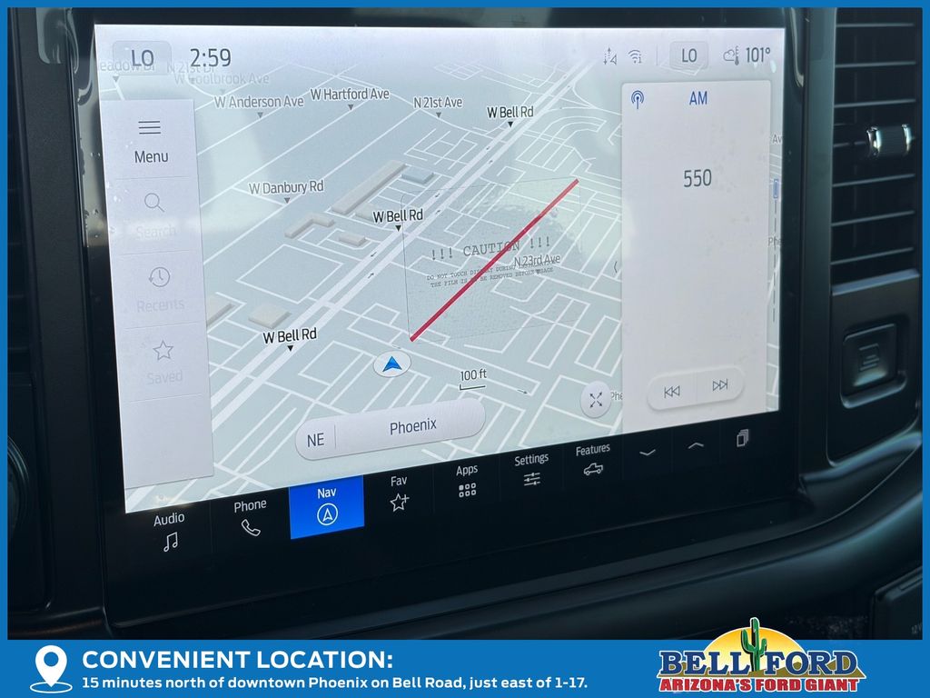 Bed Utility Package (4 Pickup Box Tie-Down Plates, LED Box Lighting, and Power Tailgate), Equipment Group 401A Standard, GVWR: 7,100 lbs Payload Package, 4WD, 4-Wheel Disc Brakes, 8 Speakers, ABS brakes, Adjustable pedals, Air Conditioning, Alloy wheels, AM/FM radio: SiriusXM with 360L, Auto High-beam Headlights, Auto-dimming door mirrors, Auto-dimming Rear-View mirror, Automatic temperature control, Brake assist, Bumpers: body-color, Compass, Delay-off headlights, Driver door bin, Driver vanity mirror, Dual front impact airbags, Dual front side impact airbags, Electronic Locking w/3.73 Axle Ratio, Electronic Stability Control, Emergency communication system: SYNC 4 911 Assist, First Aid Kit w/Ford Logo, Front anti-roll bar, Front Bucket Seats, Front Center Armrest, Front dual zone A/C, Front fog lights, Front reading lights, Front wheel independent suspension, Fully automatic headlights, Heated door mirrors, Heated front seats, Illuminated entry, Low tire pressure warning, Navigation system: Connected Navigation, Occupant sensing airbag, Outside temperature display, Overhead airbag, Overhead console, Panic alarm, Passenger door bin, Passenger vanity mirror, Power door mirrors, Power driver seat, Power passenger seat, Power steering, Power windows, Radio data system, Radio: B&O Sound System by Bang & Olufsen, Rear reading lights, Rear step bumper, Rear window defroster, Remote keyless entry, Security system, Speed control, Split folding rear seat, Steering wheel mounted audio controls, SYNC 4 w/Enhanced Voice Recognition, Tachometer, Tailgate Step w/Tailgate Work Surface, Telescoping steering wheel, Tilt steering wheel, Traction control, Trip computer, Turn signal indicator mirrors, Unique Sport Cloth 40/Console/40 Power Front Seat, Variably intermittent wipers, Voltmeter, and Wheels: 18" Alloy w/Dark Matte Finish.