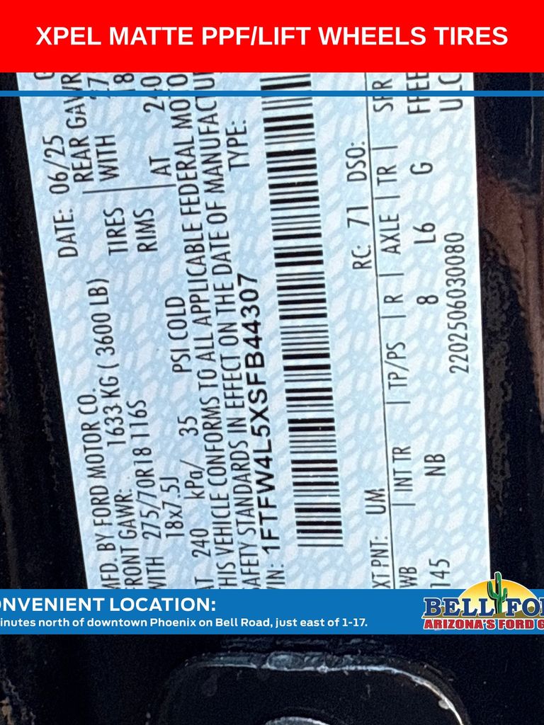 - VIN : 1FTFW4L5XSFB44307