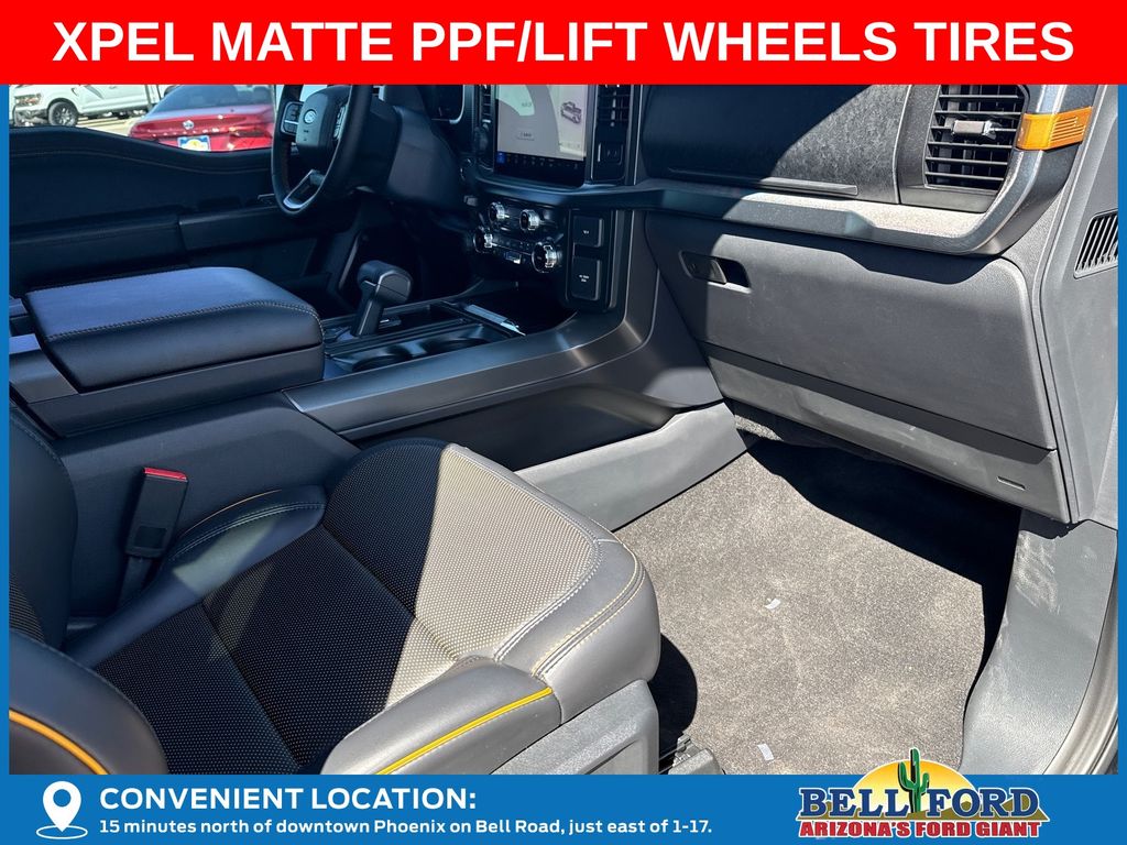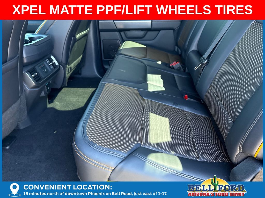 This Ford F-150 is equipped with the following options: Bed Utility Package (4 Pickup Box Tie-Down Plates, LED Box Lighting, and Power Tailgate), Equipment Group 402A High (2nd Row Heated Seats, Ambient Lighting, Auto-Dimming Rear-View Mirror, Front Axle w/Torsen Differential, Heads-Up Display, Heated Steering Wheel, LED Taillamps, Media Bin Door, Modular Front Bumper & Carbon Black Rear Bumper, Power Glass Heated Sideview Mirrors, Power-Adjustable Pedals w/Memory, Premium Wrapped Steering Wheel, Radio: B&O Unleashed Sound System by Bang & Olufsen, Rain-Sensing Wipers, Two-Speed Automatic AWD w/Mechanical Locking 4WD, Unique Tremor Leather-Trimmed Bucket Seats, and Universal Garage Door Opener), GVWR: 7,100 lbs Payload Package, Mobile Office Package (Console Worksurface, Partitioned Lockable Rear Storage, and Wireless Charging), Tow/Haul Package (Integrated Trailer Brake Controller), 4WD, 4-Wheel Disc Brakes, 8 Speakers, ABS brakes, Adjustable pedals, Air Conditioning, Alloy wheels, AM/FM radio: SiriusXM with 360L, Auto High-beam Headlights, Auto-dimming door mirrors, Auto-dimming Rear-View mirror, Automatic temperature control, Brake assist, Bumpers: body-color, Compass, Delay-off headlights, Driver door bin, Driver vanity mirror, Dual front impact airbags, Dual front side impact airbags, Electronic Locking w/3.73 Axle Ratio, Electronic Stability Control, Emergency communication system: SYNC 4 911 Assist, Front anti-roll bar, Front Bucket Seats, Front Center Armrest, Front dual zone A/C, Front fog lights, Front reading lights, Front wheel independent suspension, Fully automatic headlights, Heated door mirrors, Heated front seats, Illuminated entry, Internet access capable: FordPass Connect 5G, Low tire pressure warning, Navigation system: Connected Navigation, Occupant sensing airbag, Outside temperature display, Overhead airbag, Overhead console, Panic alarm, Passenger door bin, Passenger vanity mirror, Power door mirrors, Power driver seat, Power passenger seat, Power steering, Power windows, Radio data system, Radio: B&O Sound System by Bang & Olufsen, Rear reading lights, Rear step bumper, Rear window defroster, Remote keyless entry, Security system, Speed control, Split folding rear seat, Steering wheel mounted audio controls, SYNC 4 w/Enhanced Voice Recognition, Tachometer, Tailgate Step w/Tailgate Work Surface, Telescoping steering wheel, Tilt steering wheel, Traction control, Trip computer, Turn signal indicator mirrors, Unique Sport Cloth 40/Console/40 Power Front Seat, Variably intermittent wipers, Voltmeter, and Wheels: 18" Alloy w/Dark Matte Finish. Price includes: $2000 - Retail Customer Cash. Exp. 04/30/2026 $3000 - Retail Bonus Cash. Exp. 04/30/2026 Price includes dealer added accessories totaling $23,440.