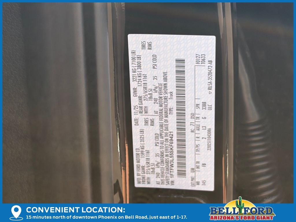 This Ford F-150 is equipped with the following options: Equipment Group 302A Mid (360 Degree Camera, 400W Cab & Bed Outlets, 6" Angular Bright Anodized Step Bar, Adaptive Cruise Control w/Stop & Go, Auto-Dimming Rear-View Mirror, Black Painted Grille w/Chrome Center Bar, Chrome Door & Tailgate Handles, Chrome Single-Tip Exhaust, Cloth 40/Console/40 Front Seats, Connected Navigation, Driver State Detection, Dual-Zone Electronic Automatic Temperature Control, Evasive Steering Assist, Ford Co-Pilot360 Assist 2.0, Front Parking Sensors, Heated Front Seats, Intelligent Access w/Push Button Start, Power Glass Heated Sideview Mirrors, Power-Sliding Rear Window, Remote Start System w/Remote Tailgate Release, Towing Technology, and Wrapped Steering Wheel), FX4 Off-Road Package, 4WD, 3.31 Axle Ratio, 4-Wheel Disc Brakes, 6 Speakers, ABS brakes, Air Conditioning, Alloy wheels, AM/FM radio: SiriusXM with 360L, Auto High-beam Headlights, Brake assist, Bumpers: chrome, Chrome wheels, Cloth 40/20/40 Front Seat, Compass, Delay-off headlights, Driver door bin, Driver vanity mirror, Dual front impact airbags, Dual front side impact airbags, Electronic Stability Control, Emergency communication system: SYNC 4 911 Assist, First Aid Kit w/Ford Logo, Front anti-roll bar, Front Center Armrest, Front fog lights, Front reading lights, Front wheel independent suspension, Fully automatic headlights, Heated door mirrors, Illuminated entry, Internet access capable: FordPass Connect 5G, Low tire pressure warning, Occupant sensing airbag, Outside temperature display, Overhead airbag, Overhead console, Panic alarm, Passenger door bin, Passenger vanity mirror, Power door mirrors, Power steering, Power windows, Radio data system, Radio: AM/FM Stereo w/SiriusXM 360L, Rear Parking Sensors, Rear reading lights, Rear step bumper, Rear window defroster, Remote keyless entry, Security system, Speed control, Split folding rear seat, Steering wheel mounted audio controls, SYNC 4 w/Enhanced Voice Recognition, Tachometer, Telescoping steering wheel, Tilt steering wheel, Traction control, Trip computer, Variably intermittent wipers, Voltmeter, and Wheels: 18" Chrome-Like PVD. Price includes: $1000 - Final Days Mega Bonus Cash. Exp. 01/02/2026 $1500 - Retail Bonus Cash. Exp. 01/05/2026 $2000 - Retail Customer Cash. Exp. 01/05/2026