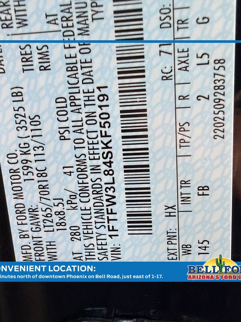 - VIN : 1FTFW3L84SKF50191