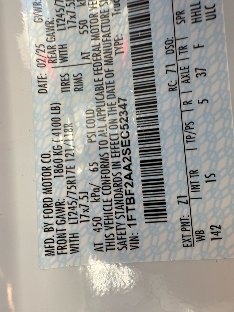 This Ford F-250SD is equipped with the following options: Camper Package (Rear Stabilizer Bar and Auxiliary Springs), GVWR: 10,000 Lb Payload Package, Order Code 600A (17" Argent Painted Steel Wheels, 3.73 Axle Ratio, HD Vinyl 40/20/40 Split Bench Seat, Radio: AM/FM Stereo with MP3 Player, and SYNC 4), XL Chrome Package (Bright Chrome Hub Covers and Center Ornaments, Chrome Front Bumper, Chrome Rear Step Bumper, and Halogen Fog Lamps), 120V/400W Outlet, 4 Speakers, 4-Wheel Disc Brakes, ABS brakes, Air Conditioning, AM/FM radio, Brake assist, Compass, Delay-off headlights, Dual front impact airbags, Dual front side impact airbags, Electronic Stability Control, Emergency communication system: SYNC 4 911 Assist, Exterior Parking Camera Rear, Front anti-roll bar, Front Center Armrest w/Storage, Front reading lights, Front wheel independent suspension, Fully automatic headlights, Heated door mirrors, Illuminated entry, Internet access capable: FordPass Connect 5G, Low tire pressure warning, Outside temperature display, Overhead airbag, Overhead console, Panic alarm, Passenger cancellable airbag, Passenger vanity mirror, Power door mirrors, Power steering, Power windows, Rear step bumper, Remote keyless entry, Security system, Speed control, Steering wheel mounted audio controls, Tachometer, Telescoping steering wheel, Tilt steering wheel, Tough Bed Spray-in Bedliner, Traction control, Trip computer, Turn signal indicator mirrors, Upfitter Switches (6), and Variably intermittent wipers. Price includes: $1000 - Final Days Mega Bonus Cash. Exp. 01/02/2026 $1500 - Retail Customer Cash. Exp. 01/05/2026 $2000 - Retail Customer Cash. Exp. 01/05/2026