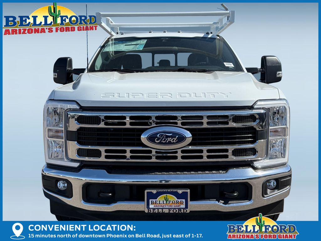 This Ford F-350SD is equipped with the following options: GVWR: 10,900 lb Payload Package, 3-Ton Mechanical Jack, 4-Wheel Disc Brakes, 6 Speakers, ABS brakes, Air Conditioning, AM/FM radio, AM/FM Stereo w/MP3 Player, Brake assist, Center High-Mounted Stop Lamp (CHMSL), Cloth 40/20/40 Split Bench Seat, Compass, Delay-off headlights, Dual front impact airbags, Dual front side impact airbags, Electronic Stability Control, Electronic-Locking w/4.30 Axle Ratio, Emergency communication system: SYNC 4 911 Assist, Front anti-roll bar, Front Center Armrest w/Storage, Front License Plate Bracket, Front reading lights, Front wheel independent suspension, Fully automatic headlights, Heated door mirrors, Illuminated entry, Internet access capable: FordPass Connect 5G, Low tire pressure warning, Outside temperature display, Overhead airbag, Overhead console, Panic alarm, Passenger cancellable airbag, Passenger vanity mirror, Power door mirrors, Power steering, Power windows, Rear anti-roll bar, Rear View Camera & Prep Kit, Remote keyless entry, Security system, Speed control, Split folding rear seat, Steering wheel mounted audio controls, SYNC 4 Communication & Entertainment System, Tachometer, Telescoping steering wheel, Tilt steering wheel, Traction control, Trip computer, Turn signal indicator mirrors, and Variably intermittent wipers. Price includes: $2000 - Retail Customer Cash. Exp. 01/05/2026