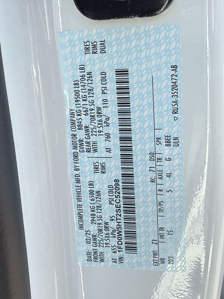 This Ford F-550SD is equipped with the following options: GVWR: 18,000 lbs Payload Package, GVWR: 19,500 lb Payload Plus Upgrade Package 1, High Capacity Trailer Tow Package, Order Code 660A, 4WD, 120V/400W Outlet, 190 Amp Alternator, 350 Amp Dual Alternators, 4-Wheel Disc Brakes, 6 Speakers, 6-Ton Hydraulic Jack, ABS brakes, Air Conditioning, AM/FM radio, Brake assist, Compass, Delay-off headlights, Dual 68 AH/65 AGM Battery, Dual front impact airbags, Dual front side impact airbags, Dual rear wheels, Emergency communication system: SYNC 4 911 Assist, Front anti-roll bar, Front Center Armrest w/Storage, Front reading lights, Fully automatic headlights, HD Vinyl 40/20/40 Split Bench Seat, Heated door mirrors, Illuminated entry, Internet access capable: FordPass Connect 5G, Outside temperature display, Overhead airbag, Overhead console, Panic alarm, Passenger vanity mirror, Platform Running Boards, Power door mirrors, Power steering, Power windows, Rear anti-roll bar, Rear reading lights, Rear View Camera & Prep Kit, Remote keyless entry, Security system, Speed control, Split folding rear seat, Steering wheel mounted audio controls, SYNC 4 Communication & Entertainment System, Tachometer, Telescoping steering wheel, Tilt steering wheel, Traction control, Trailer Brake Controller, Trip computer, Turn signal indicator mirrors, Variably intermittent wipers, and Wheels: 19.5" x 6" Argent Painted Steel. Price includes: $2000 - Retail Customer Cash. Exp. 01/05/2026