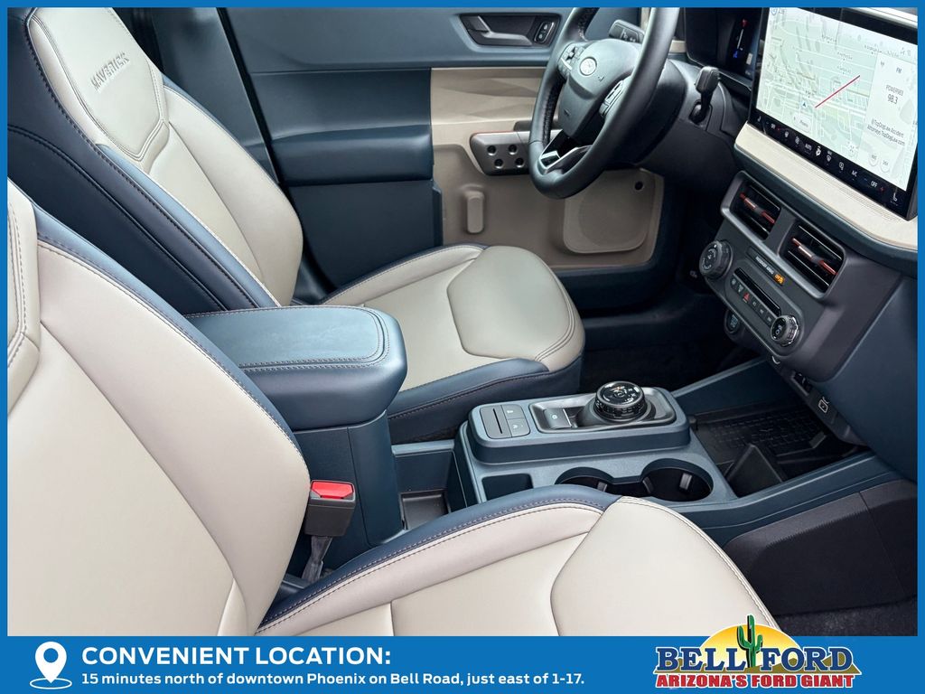 This Ford Maverick is equipped with the following options: 4K Tow Package (Trailer Brake Controller, Trailer Hitch (Class III) 2" Receiver, Transmission Oil Cooler, and Upgraded Cooling Fan), Equipment Group 502A, 2.91 Axle Ratio, 4-Wheel Disc Brakes, 8 Speakers, ABS brakes, ActiveX Trimmed Heated Front Bucket Seats, Air Conditioning, Alloy wheels, AM/FM radio: SiriusXM with 360L, Apple CarPlay/Android Auto, Auto High-beam Headlights, Automatic temperature control, Brake assist, Bumpers: body-color, Compass, Delay-off headlights, Driver door bin, Driver vanity mirror, Dual front impact airbags, Dual front side impact airbags, Electronic Stability Control, Emergency communication system: SYNC 4 911 Assist, Exterior Parking Camera Rear, Four wheel independent suspension, Front anti-roll bar, Front Bucket Seats, Front Center Armrest, Front dual zone A/C, Front reading lights, Fully automatic headlights, Heated door mirrors, Heated front seats, Heated steering wheel, Illuminated entry, Internet access capable: FordPass Connect 5G, Knee airbag, Low tire pressure warning, Navigation system: Connected Navigation, Occupant sensing airbag, Outside temperature display, Overhead airbag, Overhead console, Panic alarm, Passenger door bin, Passenger vanity mirror, Power door mirrors, Power driver seat, Power steering, Power windows, Radio data system, Radio: B&O Sound System by Bang & Olufsen, Rear anti-roll bar, Rear seat center armrest, Rear step bumper, Remote keyless entry, Security system, SiriusXM w/360L, Speed control, Speed-sensing steering, Steering wheel mounted audio controls, SYNC 4 w/Enhanced Voice Recognition, Telescoping steering wheel, Tilt steering wheel, Traction control, Trip computer, and Wheels: 19" Machined Painted Aluminum. Price includes: $1000 - Final Days Mega Bonus Cash. Exp. 01/02/2026 $1000 - Retail Customer Cash. Exp. 12/17/2025