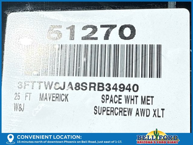 Space Wht Met 2025 Ford Maverick XLT AWD EcoBoost 2.0L I4 GTDi DOHC Turbocharged VCT 8-Speed Automatic