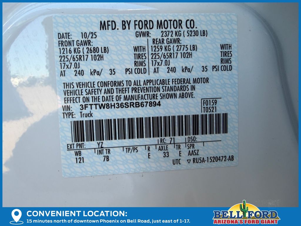 - VIN : 3FTTW8H36SRB67894