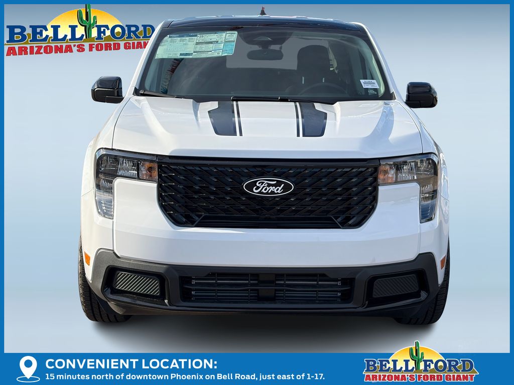 This Ford Maverick is equipped with the following options: Black Appearance Package (Black Grille, Black Interior Accents, Black Painted Mirrors, Front & Back Black Edition Ford Logo, Unique Cloth Front Bucket Seats w/Black Appearance, and Wheels: 19" Black Painted Aluminum), Equipment Group 302A, 2.91 Axle Ratio, 4-Wheel Disc Brakes, 6 Speakers, ABS brakes, Air Conditioning, Alloy wheels, AM/FM radio: SiriusXM with 360L, Apple CarPlay/Android Auto, Auto High Beams, Auto High-beam Headlights, Automatic temperature control, Brake assist, Bumpers: body-color, Compass, Delay-off headlights, Driver door bin, Driver vanity mirror, Dual front impact airbags, Dual front side impact airbags, Electronic Stability Control, Emergency communication system: SYNC 4 911 Assist, Exterior Parking Camera Rear, Four wheel independent suspension, Front anti-roll bar, Front Bucket Seats, Front Center Armrest, Front reading lights, Fully automatic headlights, Illuminated entry, Internet access capable: FordPass Connect 5G, Knee airbag, Low tire pressure warning, Occupant sensing airbag, Outside temperature display, Overhead airbag, Overhead console, Panic alarm, Passenger door bin, Passenger vanity mirror, Power door mirrors, Power steering, Power windows, Pre-Collision Assist w/Automatic Emergency Braking, Radio data system, Radio: AM/FM Stereo w/6 Speakers, Rear anti-roll bar, Rear seat center armrest, Rear step bumper, Rear-View Camera, Remote keyless entry, Security system, SiriusXM w/360L, Speed control, Speed-sensing steering, Steering wheel mounted audio controls, SYNC 4 w/Enhanced Voice Recognition, Telescoping steering wheel, Tilt steering wheel, Traction control, Trip computer, Unique Cloth Front Bucket Seats, and Wheels: 17" Carbonized Gray Painted Aluminum. Price includes: $1000 - Final Days Mega Bonus Cash. Exp. 01/02/2026 $1000 - Retail Customer Cash. Exp. 12/17/2025