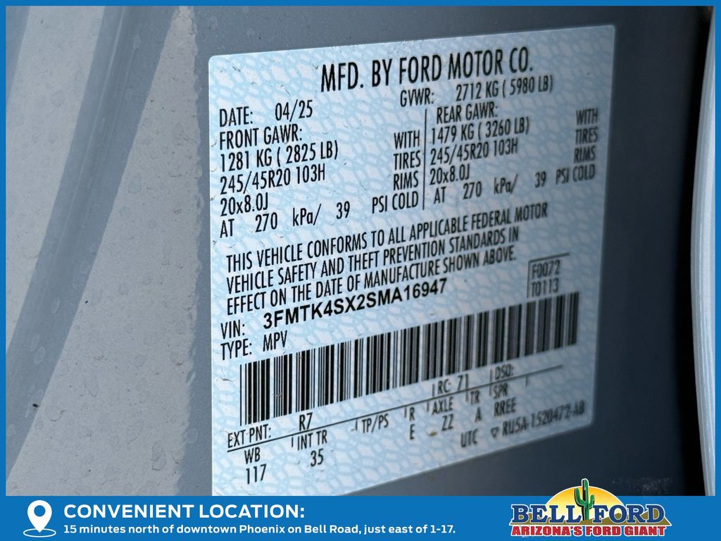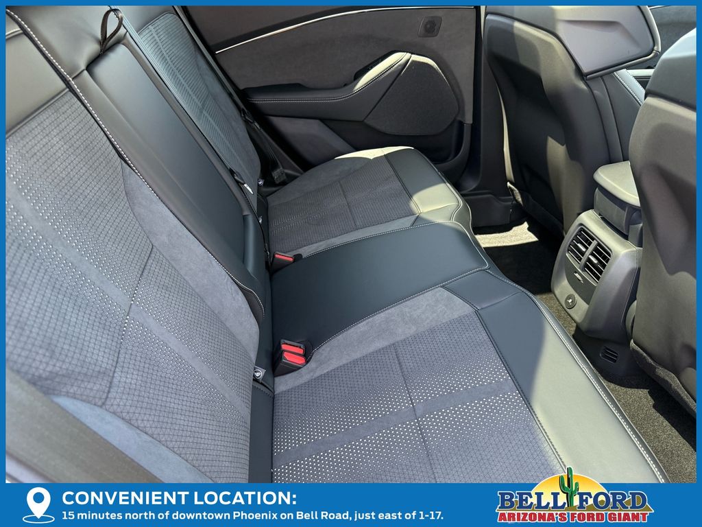 This Ford Mustang Mach-E is equipped with the following options: Equipment Group 400A Standard Package, 10 Speakers, 4-Wheel Disc Brakes, ABS brakes, Adaptive suspension, Air Conditioning, Alloy wheels, AM/FM radio: SiriusXM with 360L, Apple CarPlay/Android Auto, Auto High-beam Headlights, Auto-dimming Rear-View mirror, Automatic temperature control, Brake assist, Bumpers: body-color, Compass, Delay-off headlights, Driver door bin, Driver vanity mirror, Dual front impact airbags, Dual front side impact airbags, Electronic Stability Control, Emergency communication system: 911 Assist, Exterior Parking Camera Rear, Four wheel independent suspension, Front anti-roll bar, Front Bucket Seats, Front Center Armrest, Front dual zone A/C, Front reading lights, Fully automatic headlights, Garage door transmitter, Heated door mirrors, Heated front seats, Heated Perforated ActiveX Performance Seats, Heated steering wheel, Hood & Decklid Stripe/Door Graphics Delete, Illuminated entry, Internet access capable: FordPass Connect, Knee airbag, Low tire pressure warning, Memory seat, Mobile Power Cord (120V/240V), Mustang Mach-E GT Performance Upgrade, Navigation system: Connected Navigation, Occupant sensing airbag, Outside temperature display, Overhead airbag, Overhead console, Panic alarm, Panoramic Fixed-Glass Roof, Passenger door bin, Passenger vanity mirror, Power door mirrors, Power driver seat, Power Liftgate, Power passenger seat, Power steering, Power windows, Radio data system, Radio: B&O Sound System by Bang & Olufsen, Rain sensing wipers, Rear anti-roll bar, Rear seat center armrest, Rear side impact airbag, Rear window defroster, Rear window wiper, Remote keyless entry, Security system, SiriusXM w/360L, Speed control, Speed-sensing steering, Speed-Sensitive Wipers, Split folding rear seat, Spoiler, Steering wheel mounted audio controls, SYNC 4A w/Enhanced Voice Recognition, Telescoping steering wheel, Tilt steering wheel, Traction control, Trip computer, Turn signal indicator mirrors, Variably intermittent wipers, and Wheels: 20" Monochromatic High Gloss Black-Painted. Price includes: $1000 - Final Days Mega Bonus Cash. Exp. 01/02/2026 $2000 - Retail Bonus Cash. Exp. 01/05/2026 $3000 - Retail Customer Cash. Exp. 01/05/2026