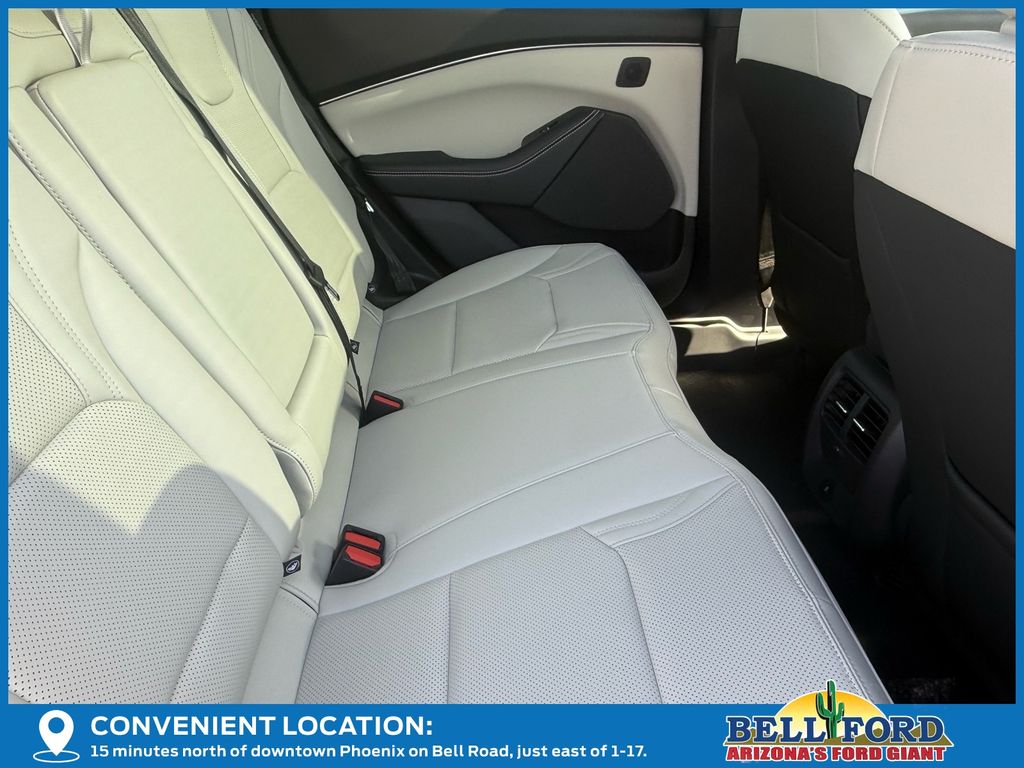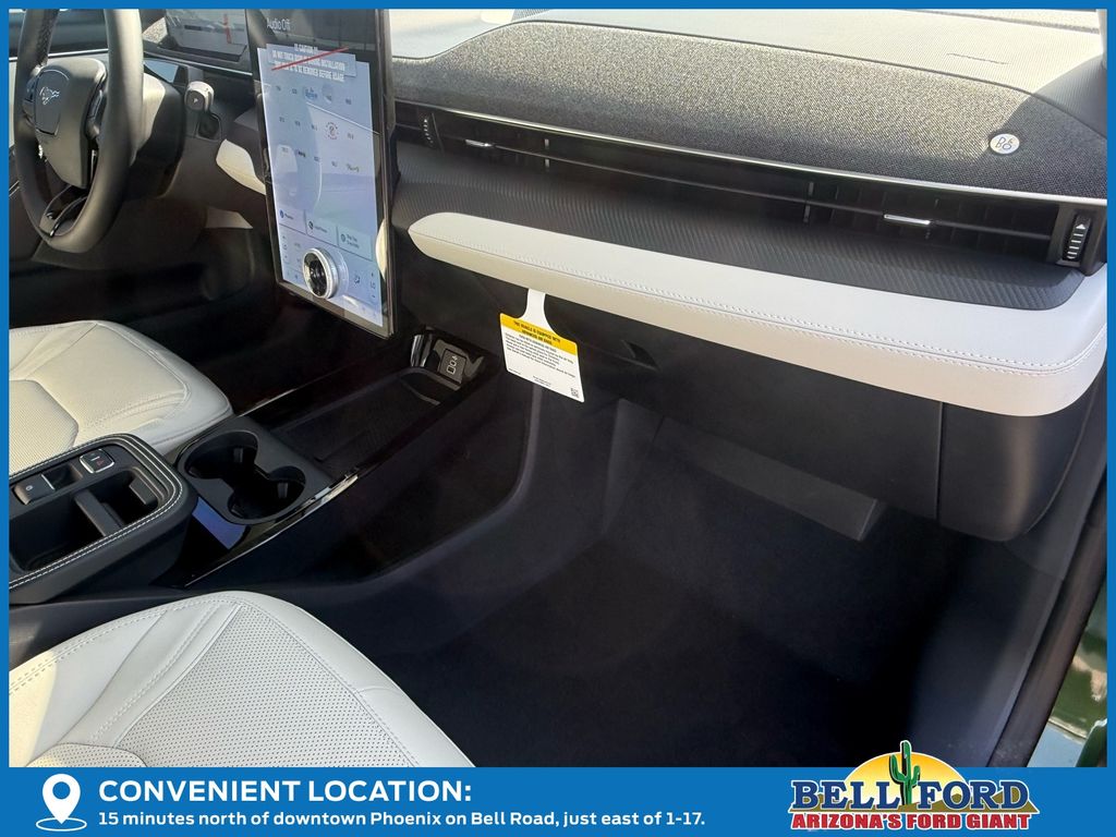 This Ford Mustang Mach-E is equipped with the following options: Equipment Group 300A Standard Package, 10 Speakers, 4-Wheel Disc Brakes, ABS brakes, Air Conditioning, Alloy wheels, AM/FM radio: SiriusXM with 360L, Apple CarPlay/Android Auto, Auto High-beam Headlights, Auto-dimming Rear-View mirror, Automatic temperature control, Brake assist, Bumpers: body-color, Compass, Delay-off headlights, Driver door bin, Driver vanity mirror, Dual front impact airbags, Dual front side impact airbags, Electronic Stability Control, Emergency communication system: 911 Assist, Exterior Parking Camera Rear, Four wheel independent suspension, Front anti-roll bar, Front Bucket Seats, Front Center Armrest, Front dual zone A/C, Front reading lights, Fully automatic headlights, Garage door transmitter, Heated door mirrors, Heated front seats, Heated steering wheel, Heated/Ventilated Perforated ActiveX Bucket Seats, Illuminated entry, Internet access capable: FordPass Connect, Knee airbag, Low tire pressure warning, Memory seat, Mobile Power Cord (120V/240V), Navigation system: Connected Navigation, Occupant sensing airbag, Outside temperature display, Overhead airbag, Overhead console, Panic alarm, Panoramic Fixed-Glass Roof, Passenger door bin, Passenger vanity mirror, Power door mirrors, Power driver seat, Power Liftgate, Power passenger seat, Power steering, Power windows, Radio data system, Radio: B&O Sound System by Bang & Olufsen, Rain sensing wipers, Rear anti-roll bar, Rear seat center armrest, Rear side impact airbag, Rear window defroster, Rear window wiper, Remote keyless entry, Security system, SiriusXM w/360L, Speed control, Speed-sensing steering, Speed-Sensitive Wipers, Split folding rear seat, Spoiler, Steering wheel mounted audio controls, SYNC 4A w/Enhanced Voice Recognition, Telescoping steering wheel, Tilt steering wheel, Traction control, Trip computer, Turn signal indicator mirrors, Variably intermittent wipers, Ventilated front seats, and Wheels: 19" Bright Machined-Face Aluminum. Price includes: $1000 - Final Days Mega Bonus Cash. Exp. 01/02/2026 $3000 - Retail Customer Cash. Exp. 01/05/2026