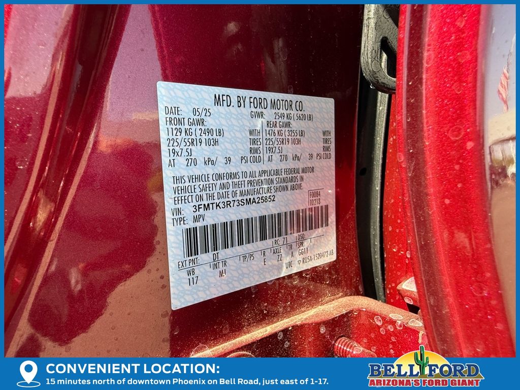 This Ford Mustang Mach-E is equipped with the following options: Equipment Group 300A Standard Package, 10 Speakers, 4-Wheel Disc Brakes, ABS brakes, Air Conditioning, Alloy wheels, AM/FM radio: SiriusXM with 360L, Apple CarPlay/Android Auto, Auto High-beam Headlights, Auto-dimming Rear-View mirror, Automatic temperature control, Brake assist, Bumpers: body-color, Compass, Delay-off headlights, Driver door bin, Driver vanity mirror, Dual front impact airbags, Dual front side impact airbags, Electronic Stability Control, Emergency communication system: 911 Assist, Exterior Parking Camera Rear, Four wheel independent suspension, Front anti-roll bar, Front Bucket Seats, Front Center Armrest, Front dual zone A/C, Front reading lights, Fully automatic headlights, Garage door transmitter, Heated door mirrors, Heated front seats, Heated steering wheel, Heated/Ventilated Perforated ActiveX Bucket Seats, Illuminated entry, Internet access capable: FordPass Connect, Knee airbag, Low tire pressure warning, Memory seat, Mobile Power Cord (120V/240V), Navigation system: Connected Navigation, Occupant sensing airbag, Outside temperature display, Overhead airbag, Overhead console, Panic alarm, Passenger door bin, Passenger vanity mirror, Power door mirrors, Power driver seat, Power Liftgate, Power passenger seat, Power steering, Power windows, Radio data system, Radio: B&O Sound System by Bang & Olufsen, Rain sensing wipers, Rear anti-roll bar, Rear seat center armrest, Rear side impact airbag, Rear window defroster, Rear window wiper, Remote keyless entry, Security system, SiriusXM w/360L, Speed control, Speed-sensing steering, Speed-Sensitive Wipers, Split folding rear seat, Spoiler, Steering wheel mounted audio controls, SYNC 4A w/Enhanced Voice Recognition, Telescoping steering wheel, Tilt steering wheel, Traction control, Trip computer, Turn signal indicator mirrors, Variably intermittent wipers, Ventilated front seats, and Wheels: 19" Bright Machined-Face Aluminum. Price includes: $1000 - Final Days Mega Bonus Cash. Exp. 01/02/2026 $3000 - Retail Customer Cash. Exp. 01/05/2026