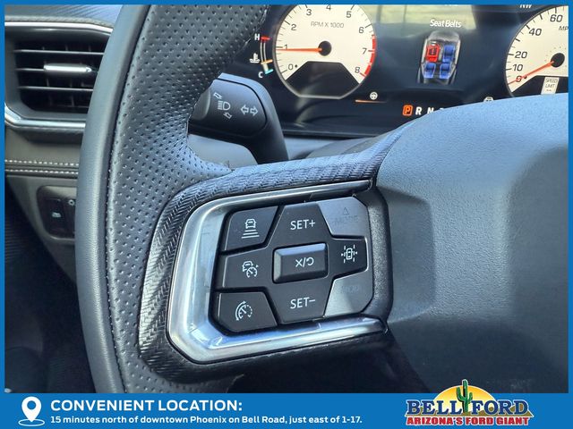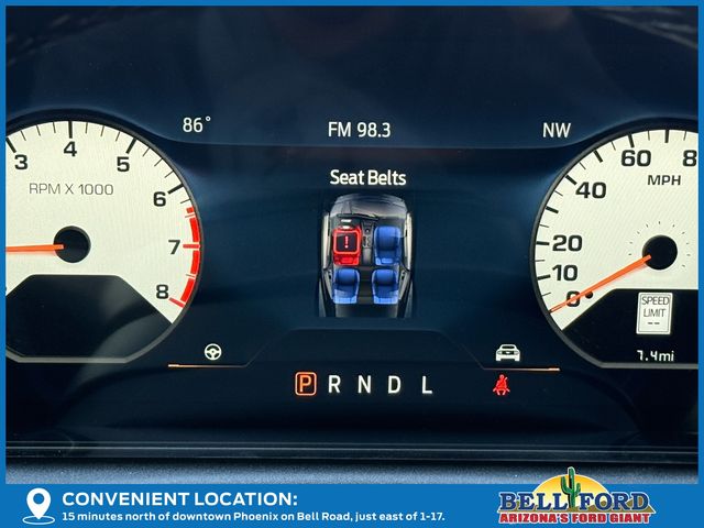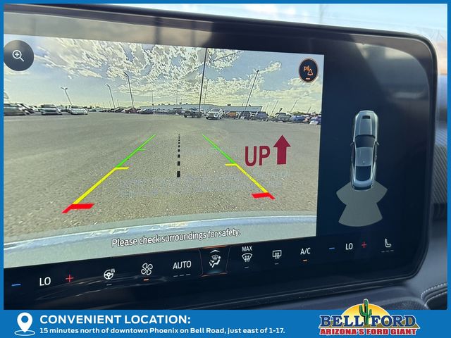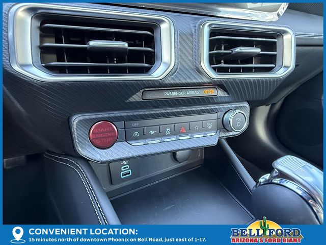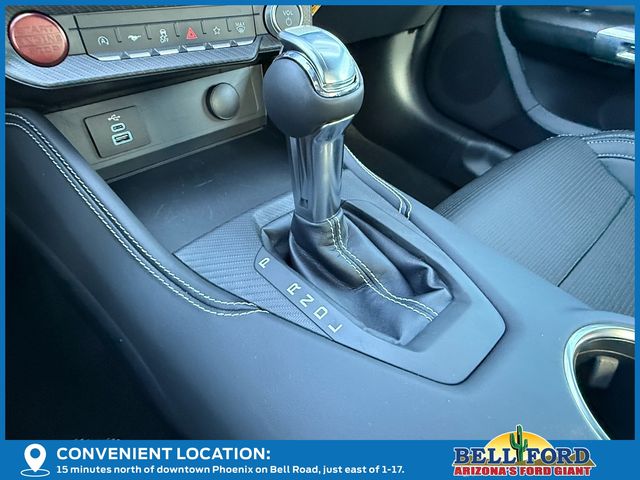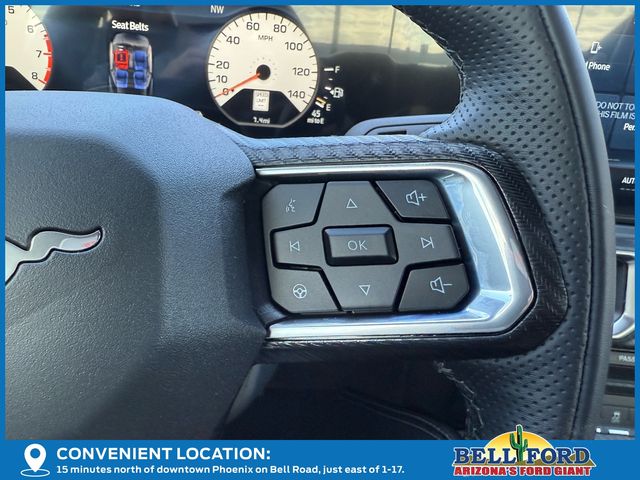 4-Wheel Disc Brakes, ABS brakes, Air Conditioning, Alloy wheels, AM/FM Stereo, Auto High-beam Headlights, Automatic temperature control, Brake assist, Bumpers: body-color, Compass, Delay-off headlights, Driver door bin, Driver vanity mirror, Dual front impact airbags, Dual front side impact airbags, Electronic Stability Control, Emergency communication system: 911 Assist, Exterior Parking Camera Rear, Four wheel independent suspension, Front anti-roll bar, Front Bucket Seats, Front Center Armrest, Front dual zone A/C, Front reading lights, Fully automatic headlights, Illuminated entry, Knee airbag, Leather Shift Knob, Low tire pressure warning, Occupant sensing airbag, Outside temperature display, Overhead airbag, Overhead console, Panic alarm, Passenger door bin, Passenger vanity mirror, Power door mirrors, Power steering, Power windows, Radio data system, Rain sensing wipers, Rear anti-roll bar, Rear Parking Sensors, Rear window defroster, Remote keyless entry, Speed control, Speed-sensing steering, Speed-Sensitive Wipers, Split folding rear seat, Sport steering wheel, Steering wheel mounted audio controls, SYNC 4, Tachometer, Telescoping steering wheel, Tilt steering wheel, Traction control, Trip computer, Variably intermittent wipers, Voltmeter, and Wheels: 18" x 8" Machined-Face Aluminum.