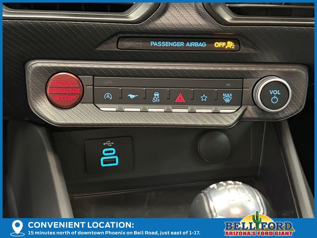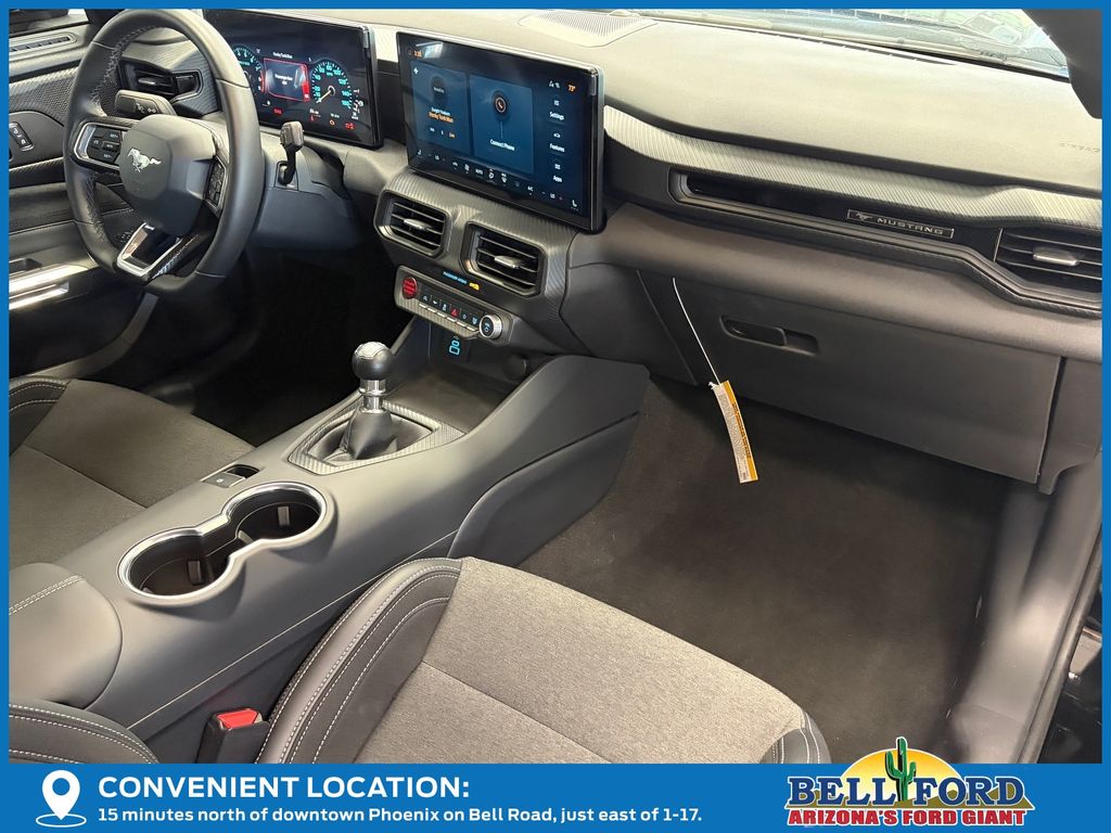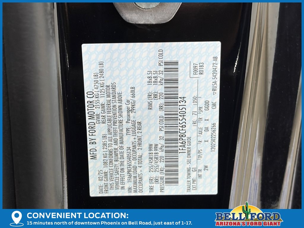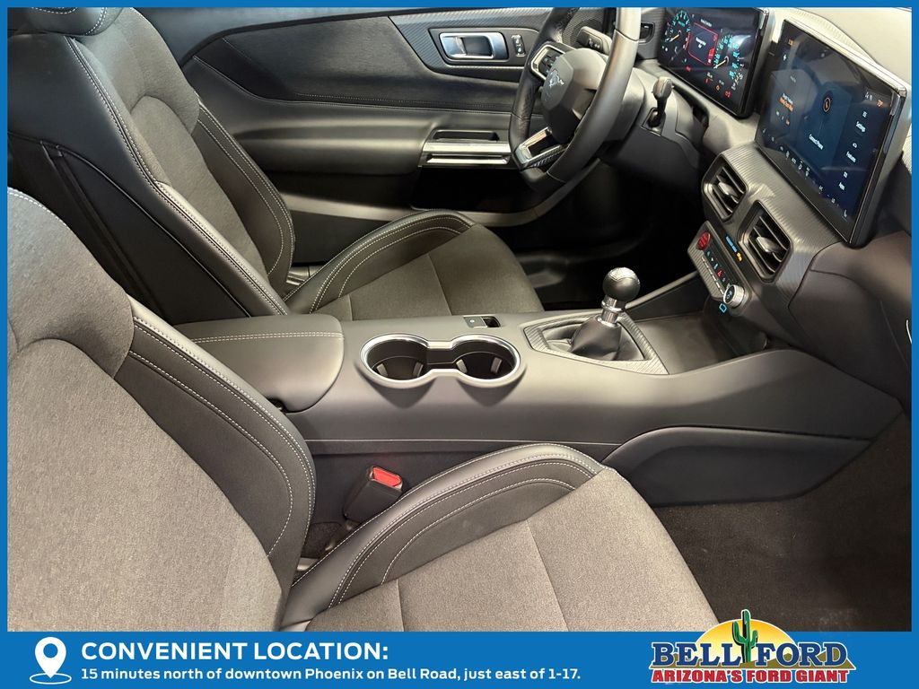 This Ford Mustang is equipped with the following options: Equipment Group 301A High Package (9-Speaker Stereo System, Ambient Lighting w/MyColor, Cloth/Vinyl Heated Bucket Seats, and SiriusXM w/360L & HD Radio), 3.55 Limited Slip Rear Axle, 4-Wheel Disc Brakes, 6 Speakers, ABS brakes, Active Valve Performance Exhaust, Air Conditioning, Alloy wheels, AM/FM radio, AM/FM Stereo, Auto High-beam Headlights, Automatic temperature control, Brake assist, Bumpers: body-color, Cloth Bucket Seats, Compass, Delay-off headlights, Driver door bin, Driver vanity mirror, Dual front impact airbags, Dual front side impact airbags, Electronic Stability Control, Emergency communication system: 911 Assist, Exterior Parking Camera Rear, Four wheel independent suspension, Front anti-roll bar, Front Bucket Seats, Front Center Armrest, Front dual zone A/C, Front reading lights, Fully automatic headlights, Illuminated entry, Knee airbag, Leather Shift Knob, Leather steering wheel, Low tire pressure warning, Occupant sensing airbag, Outside temperature display, Overhead airbag, Overhead console, Panic alarm, Passenger door bin, Passenger vanity mirror, Power door mirrors, Power steering, Power windows, Radio data system, Rain sensing wipers, Rear anti-roll bar, Rear Parking Sensors, Rear window defroster, Remote keyless entry, Speed control, Speed-sensing steering, Speed-Sensitive Wipers, Split folding rear seat, Spoiler, Sport steering wheel, Steering wheel mounted audio controls, SYNC 4, Tachometer, Telescoping steering wheel, Tilt steering wheel, Traction control, Trip computer, Variably intermittent wipers, Voltmeter, and Wheels: 18" x 8.5" Ebony Black Painted Aluminum. Price includes: $1000 - Final Days Mega Bonus Cash. Exp. 01/02/2026 $3500 - Retail Customer Cash. Exp. 01/05/2026 Price includes dealer added accessories totaling $13,988.