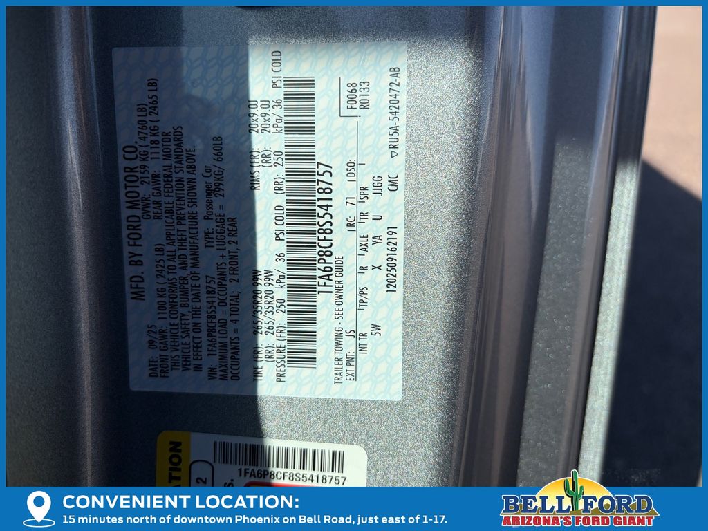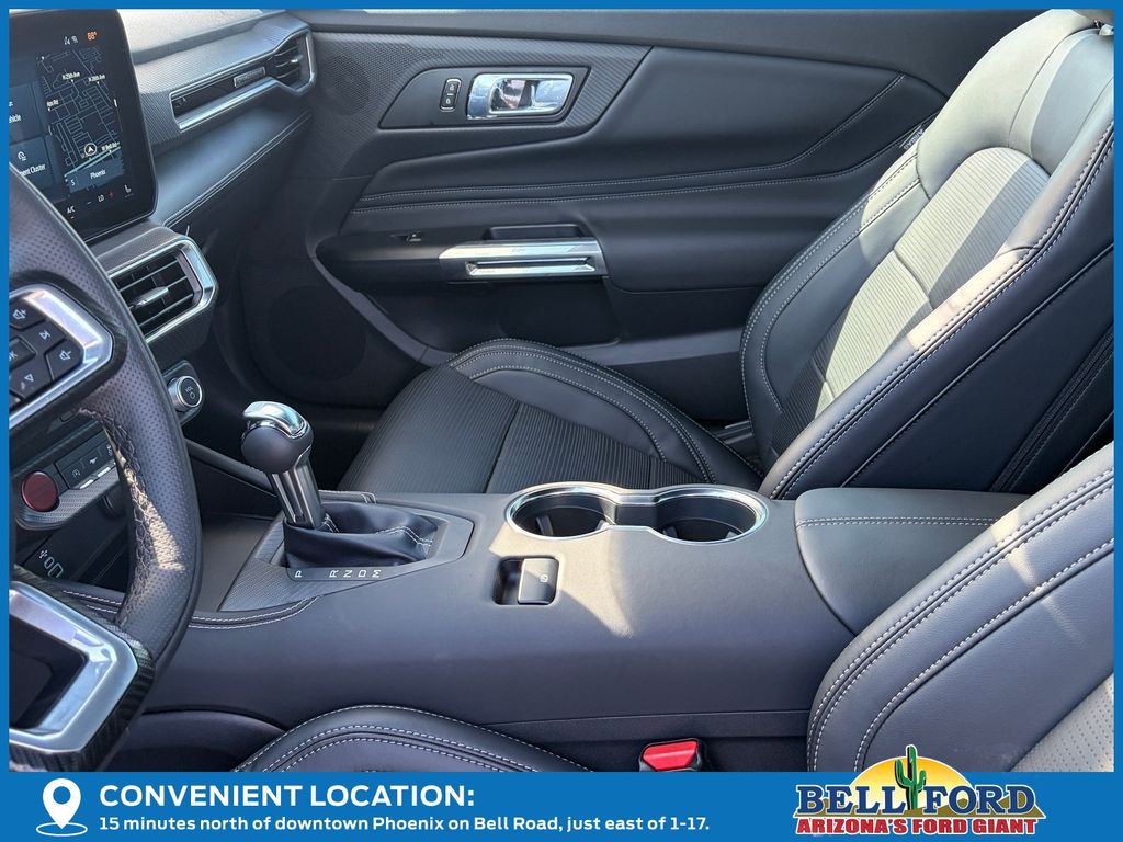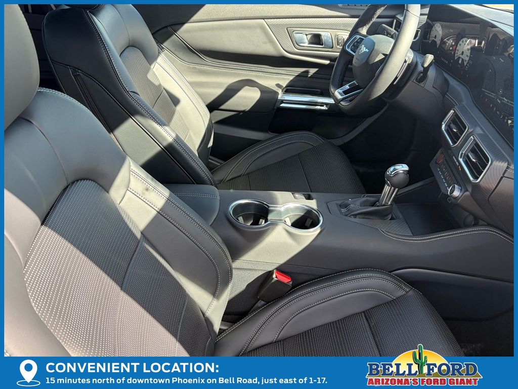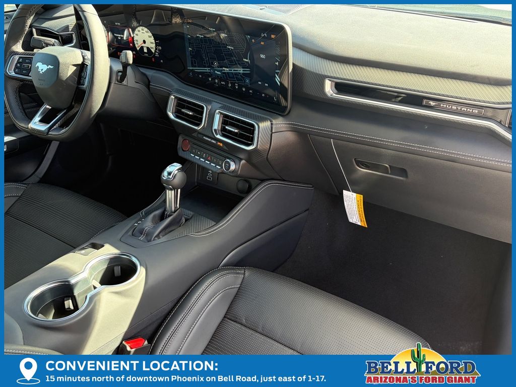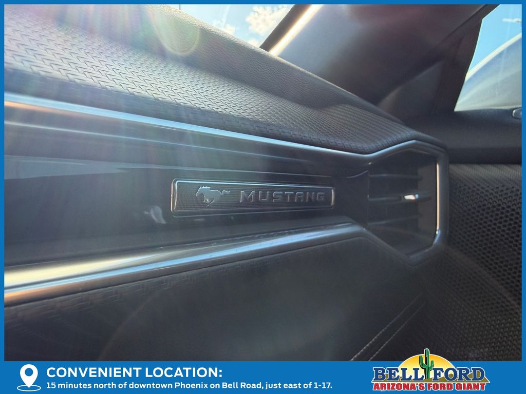 This Ford Mustang is equipped with the following options: 4-Wheel Disc Brakes, 6 Speakers, ABS brakes, Air Conditioning, Alloy wheels, AM/FM radio, AM/FM Stereo, Auto High-beam Headlights, Automatic temperature control, Brake assist, Bumpers: body-color, Cloth Bucket Seats, Compass, Delay-off headlights, Driver door bin, Driver vanity mirror, Dual front impact airbags, Dual front side impact airbags, Electronic Stability Control, Emergency communication system: 911 Assist, Exterior Parking Camera Rear, Four wheel independent suspension, Front anti-roll bar, Front Bucket Seats, Front Center Armrest, Front dual zone A/C, Front reading lights, Fully automatic headlights, Illuminated entry, Internet access capable: FordPass Connect, Knee airbag, Leather Shift Knob, Leather steering wheel, Low tire pressure warning, Occupant sensing airbag, Outside temperature display, Overhead airbag, Overhead console, Panic alarm, Passenger door bin, Passenger vanity mirror, Power door mirrors, Power steering, Power windows, Radio data system, Rain sensing wipers, Rear anti-roll bar, Rear Parking Sensors, Rear window defroster, Remote keyless entry, Remote Start System, Speed control, Speed-sensing steering, Speed-Sensitive Wipers, Split folding rear seat, Spoiler, Sport steering wheel, Steering wheel mounted audio controls, SYNC 4, Tachometer, Telescoping steering wheel, Tilt steering wheel, Traction control, Trip computer, Variably intermittent wipers, Voltmeter, and Wheels: 18" x 8.5" Ebony Black Painted Aluminum. Price includes: $1000 - Final Days Mega Bonus Cash. Exp. 01/02/2026 $3500 - Retail Customer Cash. Exp. 01/05/2026