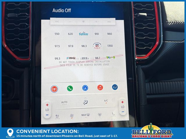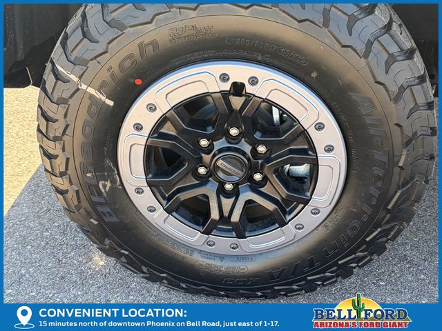 Equipment Group 800A Standard, 4WD, 10 Speakers, 4-Wheel Disc Brakes, 4.27 Axle Ratio, ABS brakes, Air Conditioning, Alloy wheels, AM/FM radio: SiriusXM, Auto High-beam Headlights, Auto-dimming Rear-View mirror, Automatic temperature control, Brake assist, Compass, Delay-off headlights, Driver door bin, Driver vanity mirror, Dual front impact airbags, Dual front side impact airbags, Electronic Stability Control, Emergency communication system: SYNC 4 911 Assist, Front anti-roll bar, Front Bucket Seats, Front Center Armrest, Front dual zone A/C, Front fog lights, Front reading lights, Front wheel independent suspension, Fully automatic headlights, Garage door transmitter, Heated door mirrors, Heated front seats, Heated steering wheel, Illuminated entry, Leather Shift Knob, Leather steering wheel, Leather-Trimmed Front Heated Bucket Seats, Low tire pressure warning, Memory seat, Navigation system: Connected Navigation, Occupant sensing airbag, Outside temperature display, Overhead airbag, Overhead console, Panic alarm, Passenger door bin, Passenger vanity mirror, Power door mirrors, Power driver seat, Power passenger seat, Power steering, Power windows, Radio: B&O Sound System by Bang & Olufsen, Rain sensing wipers, Rear reading lights, Rear seat center armrest, Rear step bumper, Rear window defroster, Remote keyless entry, Security system, SiriusXM Satellite Radio, Speed control, Speed-sensing steering, Steering wheel mounted audio controls, SYNC 4A, Telescoping steering wheel, Tilt steering wheel, Traction control, Trip computer, Turn signal indicator mirrors, Variably intermittent wipers, Voltmeter, Wheels: 17" Forged Beadlock Capable, and Wheels: 17" Gray-Painted Aluminum.