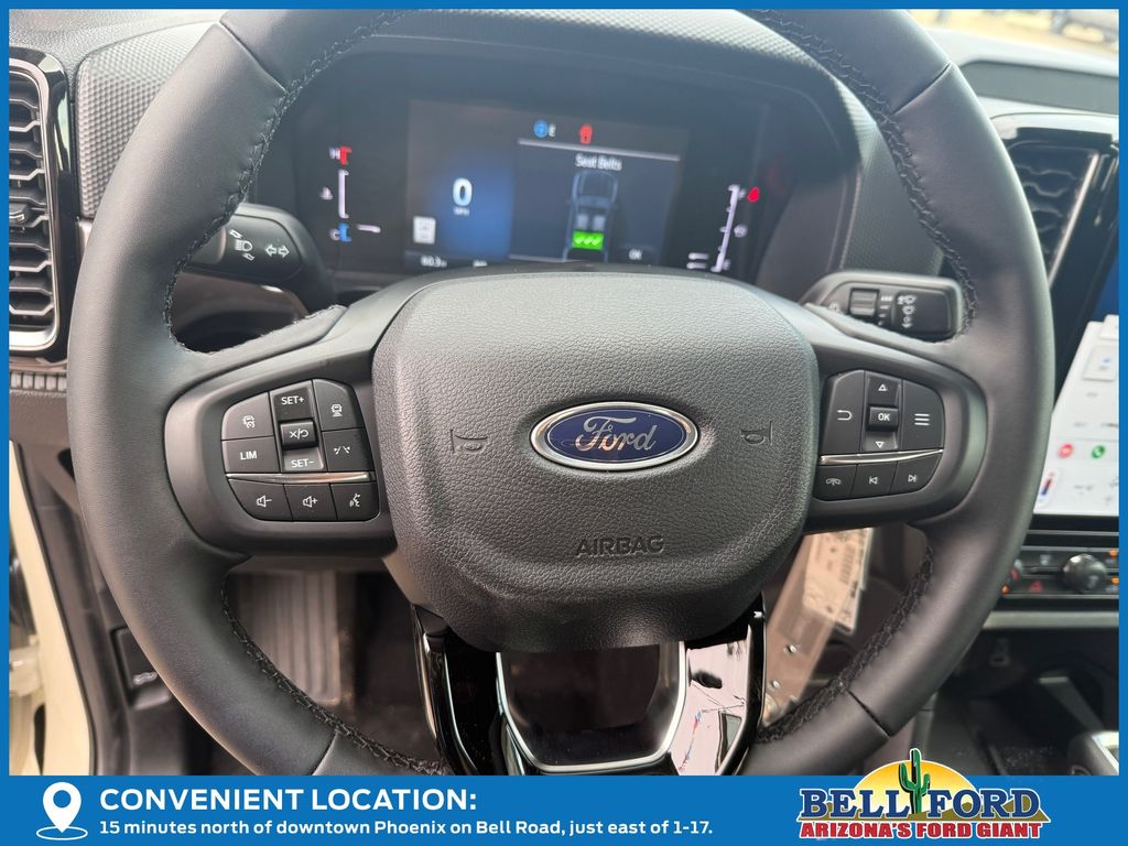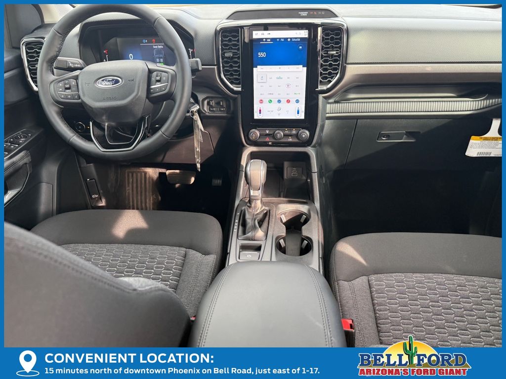 This Ford Ranger is equipped with the following options: Advanced Towing Package Plus Technology Package (360-Degree Camera, Adaptive Cruise Control, Front Parking Sensors, Pro Trailer Backup Assist, Rear Parking Sensors w/Trailer Guidance, and Trailer Brake Controller), Black Appearance Package (Black Center Bar & Surround Grille, Black Rear Bumper, Body-Color Painted Front Fascia, Front & Rear Black Ford Ovals, Painted Body-Color Wheel Lip Molding, Unique Carpet Mats, and Wheels: 18" Black Painted), Equipment Group 300A Standard, Sport Appearance Package (Gray Painted Center Bar & Grille Surround, Gray Painted Front Fascia & Rear Bumper, and Sport Box Decal), Trailer Tow Package (Class IV Trailer Hitch Receiver), 4WD, 3.73 Axle Ratio, 4-Wheel Disc Brakes, 6 Speakers, ABS brakes, Air Conditioning, Alloy wheels, AM/FM radio: SiriusXM, AM/FM Stereo, Auto High-beam Headlights, Auto-dimming Rear-View mirror, Brake assist, Cloth Front Bucket Seats, Compass, Delay-off headlights, Driver door bin, Driver vanity mirror, Dual front impact airbags, Dual front side impact airbags, Electronic Stability Control, Emergency communication system: SYNC 4 911 Assist, Front anti-roll bar, Front Bucket Seats, Front Center Armrest, Front fog lights, Front reading lights, Front wheel independent suspension, Fully automatic headlights, Illuminated entry, Integrated Box Side Step, Internet access capable: FordPass Connect 4G, Leather Shift Knob, Low tire pressure warning, Navigation system: Connected Navigation, Occupant sensing airbag, Outside temperature display, Overhead airbag, Overhead console, Panic alarm, Passenger door bin, Passenger vanity mirror, Power door mirrors, Power steering, Power windows, Power-Sliding Rear Window, Rear reading lights, Rear seat center armrest, Rear step bumper, Rear window defroster, Remote keyless entry, Security system, SiriusXM Satellite Radio, Speed control, Speed-sensing steering, Steering wheel mounted audio controls, SYNC 4A w/Connected Navigation, Telescoping steering wheel, Tilt steering wheel, Traction control, Trip computer, Variably intermittent wipers, Voltmeter, and Wheels: 17" Gray-Painted Aluminum. Price includes: $2000 - Bonus Customer Cash. Exp. 03/31/2026