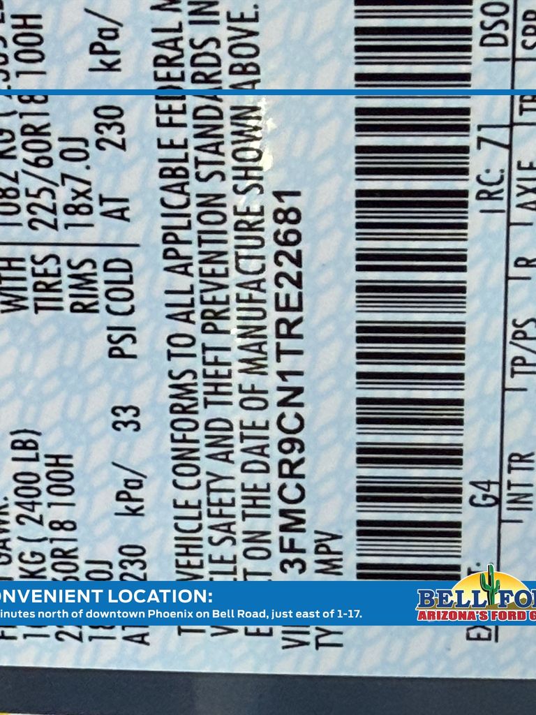 - VIN : 3FMCR9CN1TRE22681