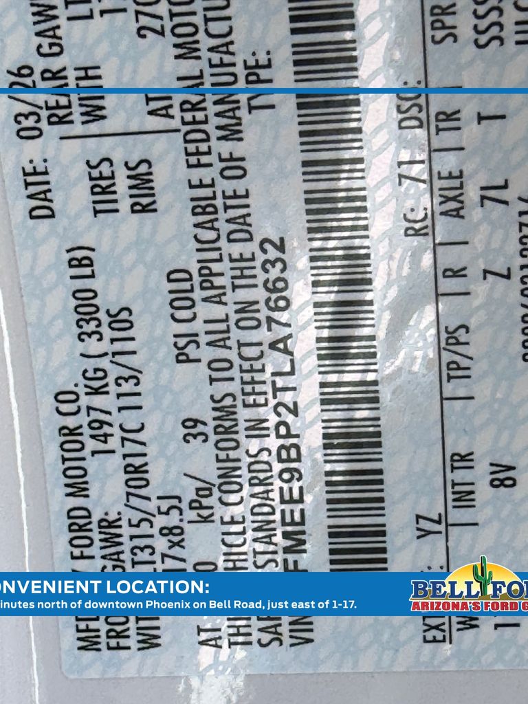 - VIN : 1FMEE9BP2TLA76632