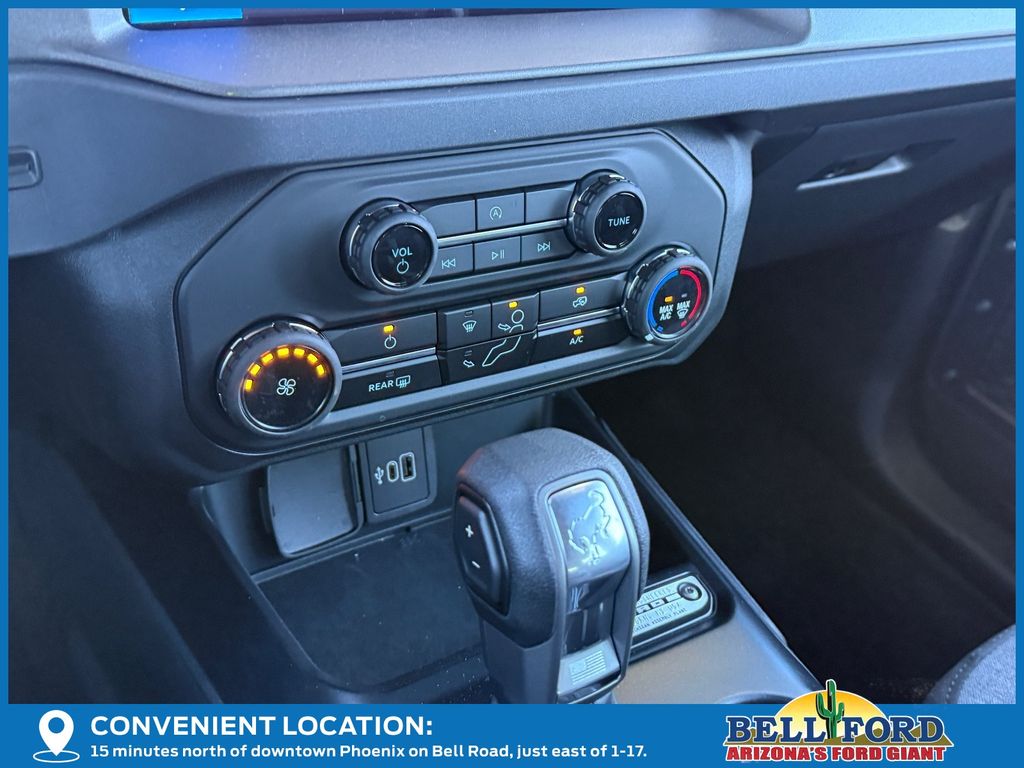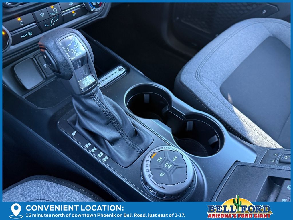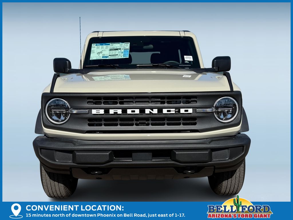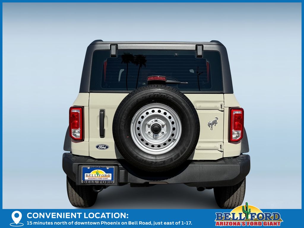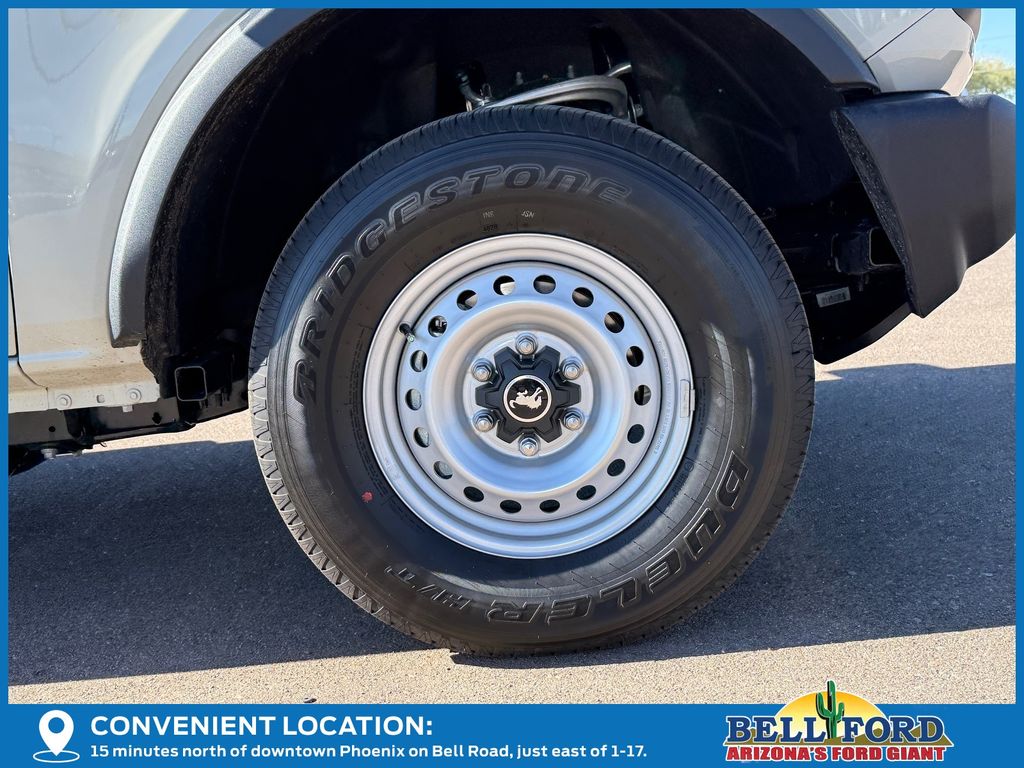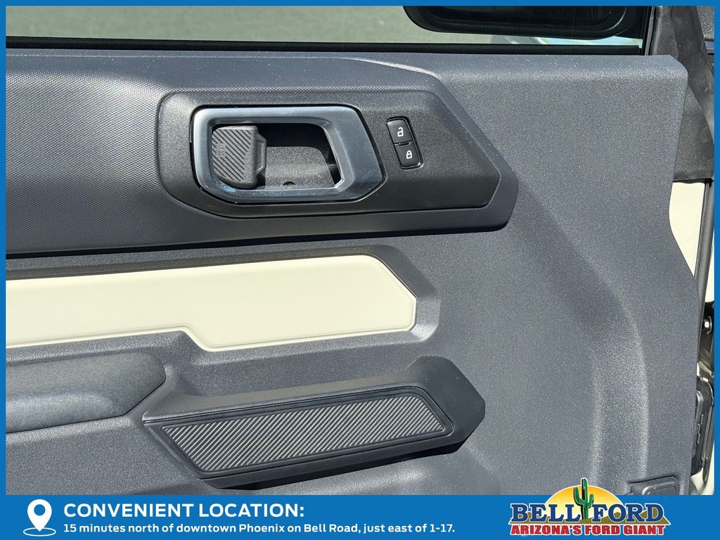This Ford Bronco is equipped with the following options: Equipment Group 101A (4.46 Axle Ratio, AM/FM Stereo, Cloth Bucket Seats, SiriusXM with 360L, SYNC 4, and Wheels: 16" Bright Polished Silver-Painted Steel), Ford Connectivity Package (1-Year Included), 4-Wheel Disc Brakes, 7 Speakers, ABS brakes, Air Conditioning, AM/FM radio: SiriusXM with 360L, Auto High-beam Headlights, Brake assist, Compass, Convertible HardTop, Convertible roof lining, Delay-off headlights, Driver door bin, Driver vanity mirror, Dual front impact airbags, Dual front side impact airbags, Electronic Stability Control, Emergency communication system: 911 Assist, Exterior Parking Camera Rear, Front anti-roll bar, Front Bucket Seats, Front Center Armrest, Front reading lights, Front wheel independent suspension, Fully automatic headlights, Glass rear window, Heated door mirrors, Illuminated entry, Integrated roll-over protection, Low tire pressure warning, Occupant sensing airbag, Outside temperature display, Overhead airbag, Overhead console, Panic alarm, Passenger door bin, Passenger vanity mirror, Power door mirrors, Power steering, Power windows, Radio data system, Rear window defroster, Rear window wiper, Remote keyless entry, Security system, Speed control, Split folding rear seat, Steering wheel mounted audio controls, Tachometer, Telescoping steering wheel, Tilt steering wheel, Traction control, Trip computer, and Variably intermittent wipers.